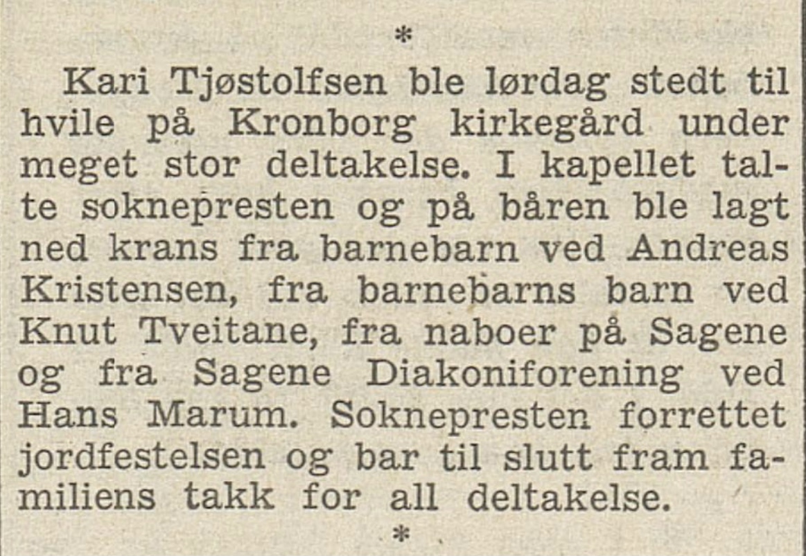 Jonnie Lindalen blei gift med Arne Sagaas fra Drangedal.
