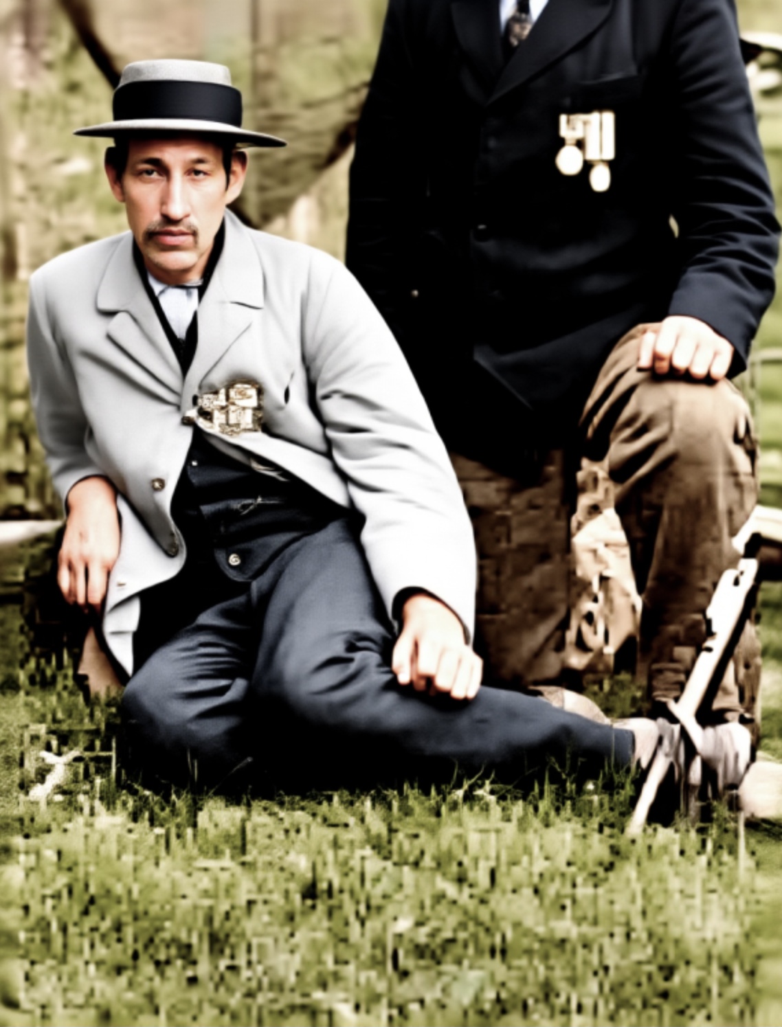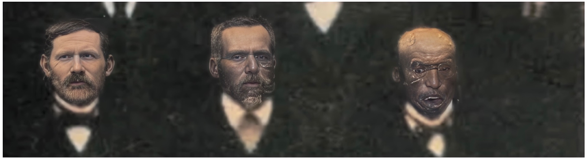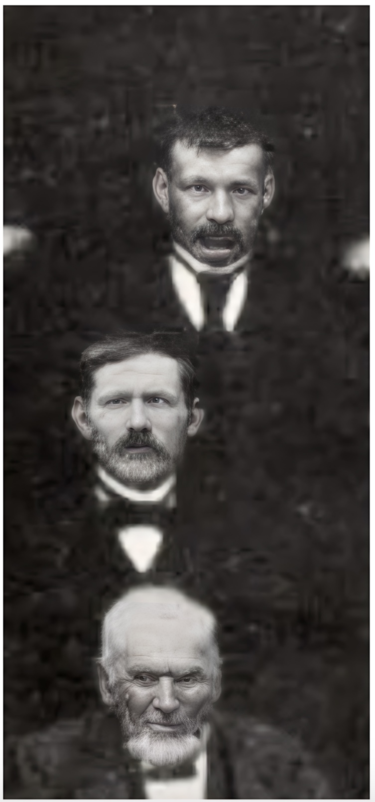 Vi ser skyggen te fotografen under sitt teppe te høyre. Te venstre står gjerne ein hjølpar.