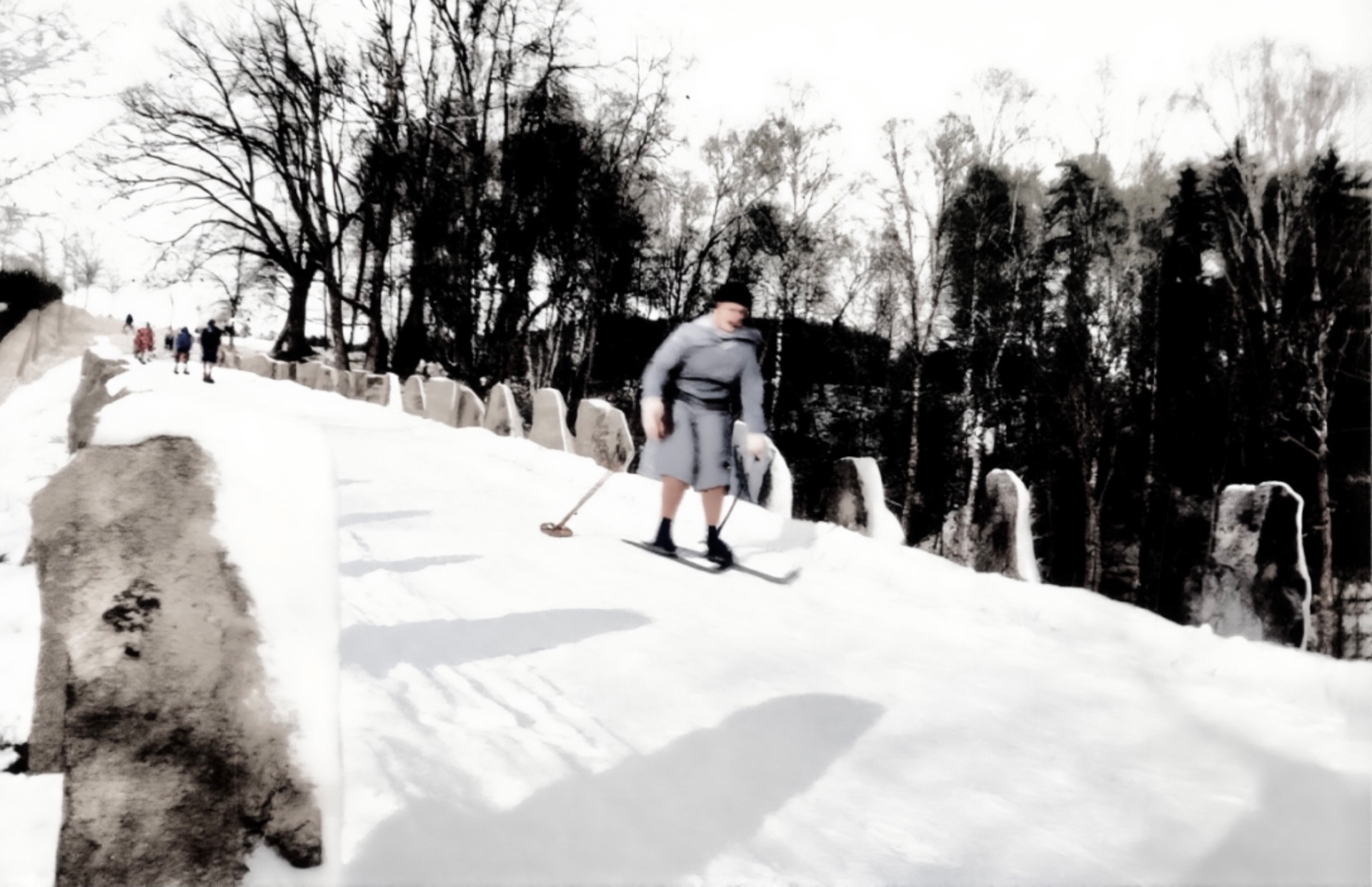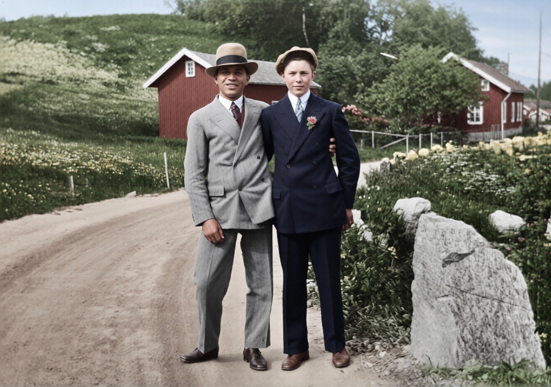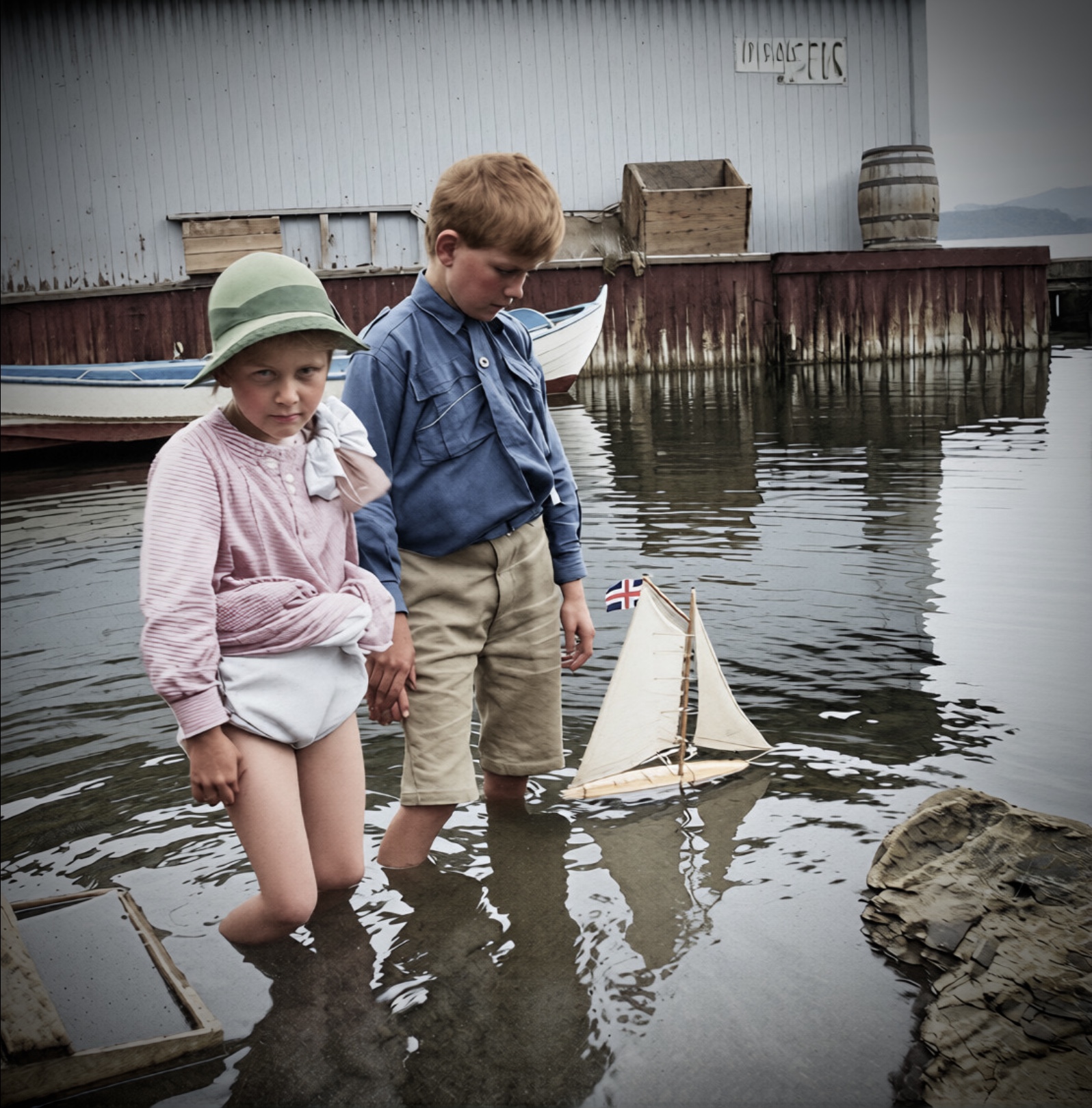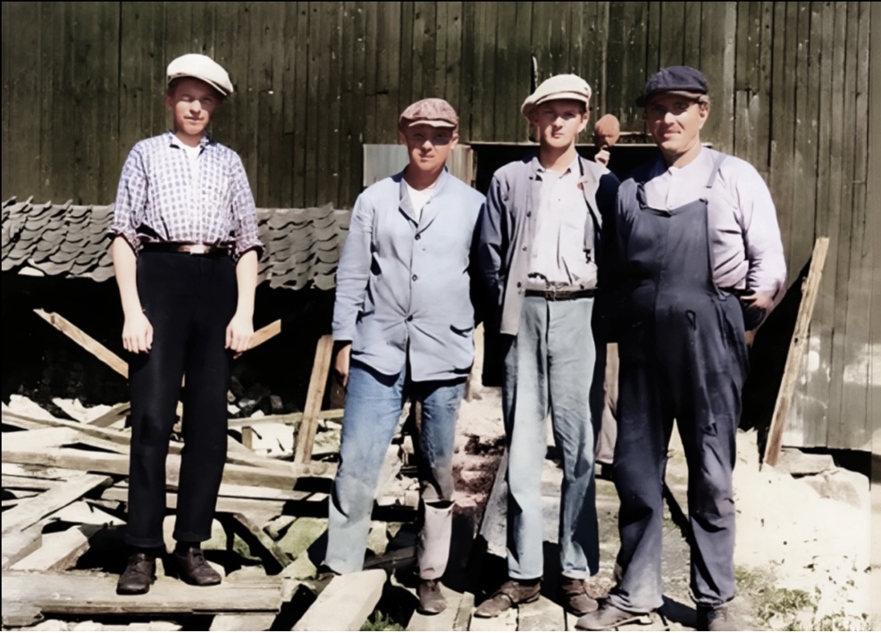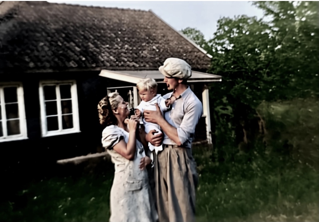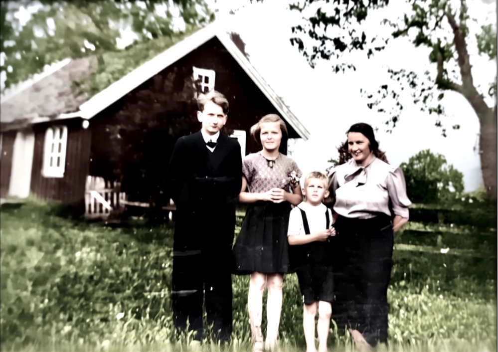 Vi er på nedre Lindalen på Sagene og det er krig i Norge. Kari Funnemark(1902-1982) va gift med Andreas Nilsen. Nils Kristian står te venstre(1924-2016) og va sønn av Kari. Gunhild (Ingeborg) (1928-2019) va datter og står ved siden av bror sin. Søskenbarnet Einar (Godtfred) (1933-2015) står ved siden av tante. Einar va far te: