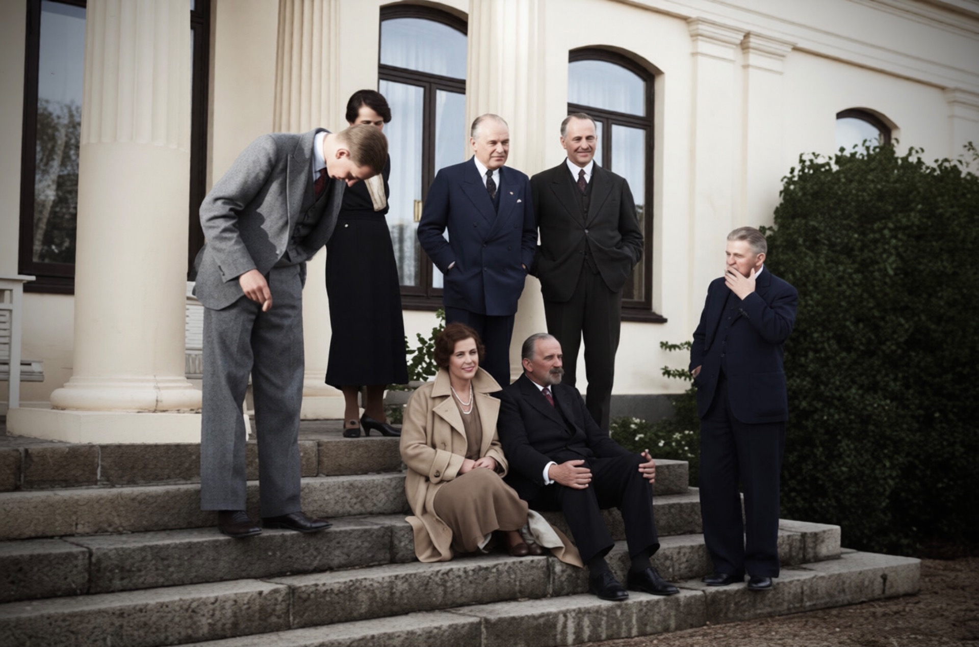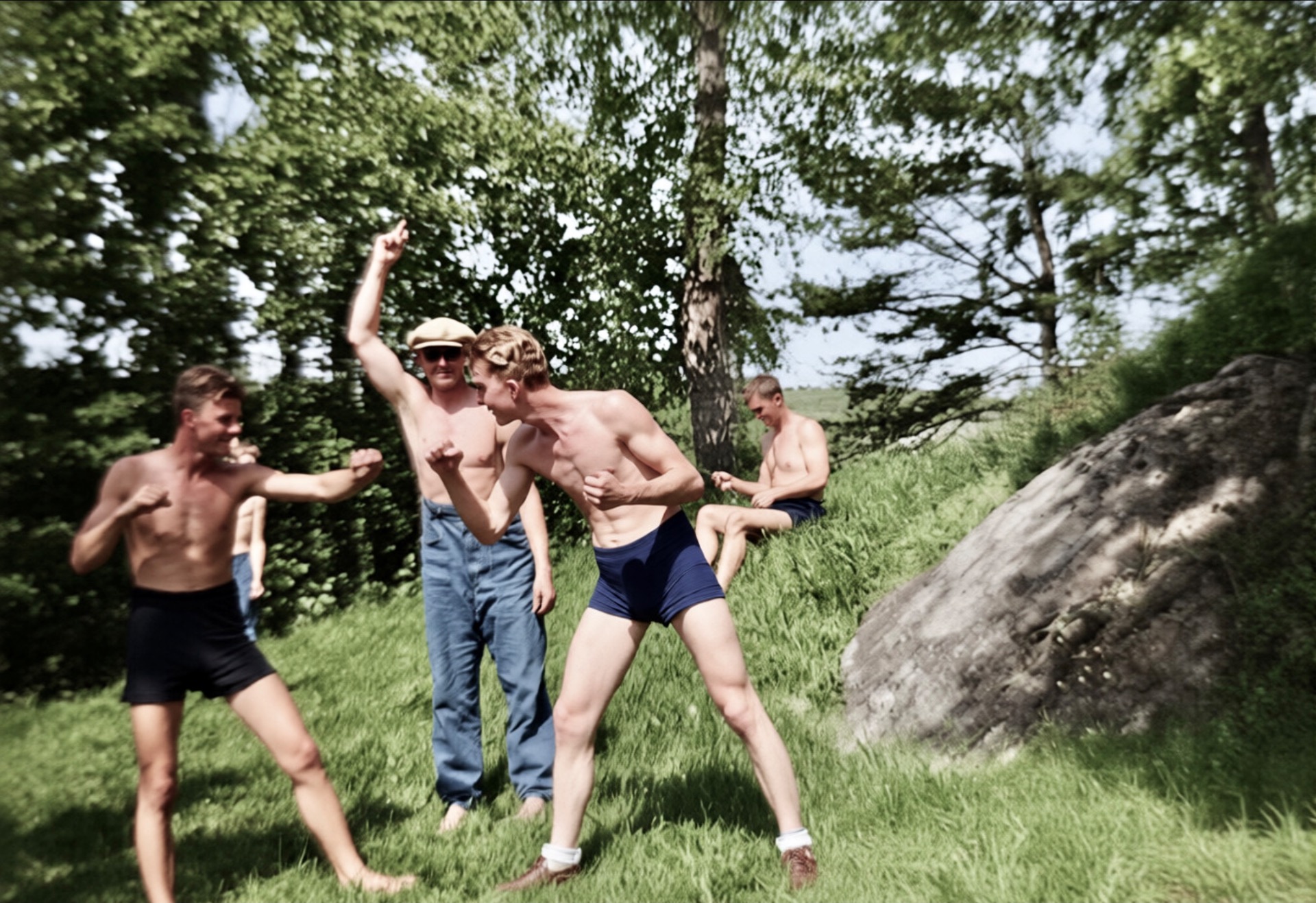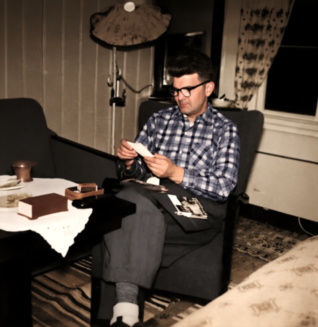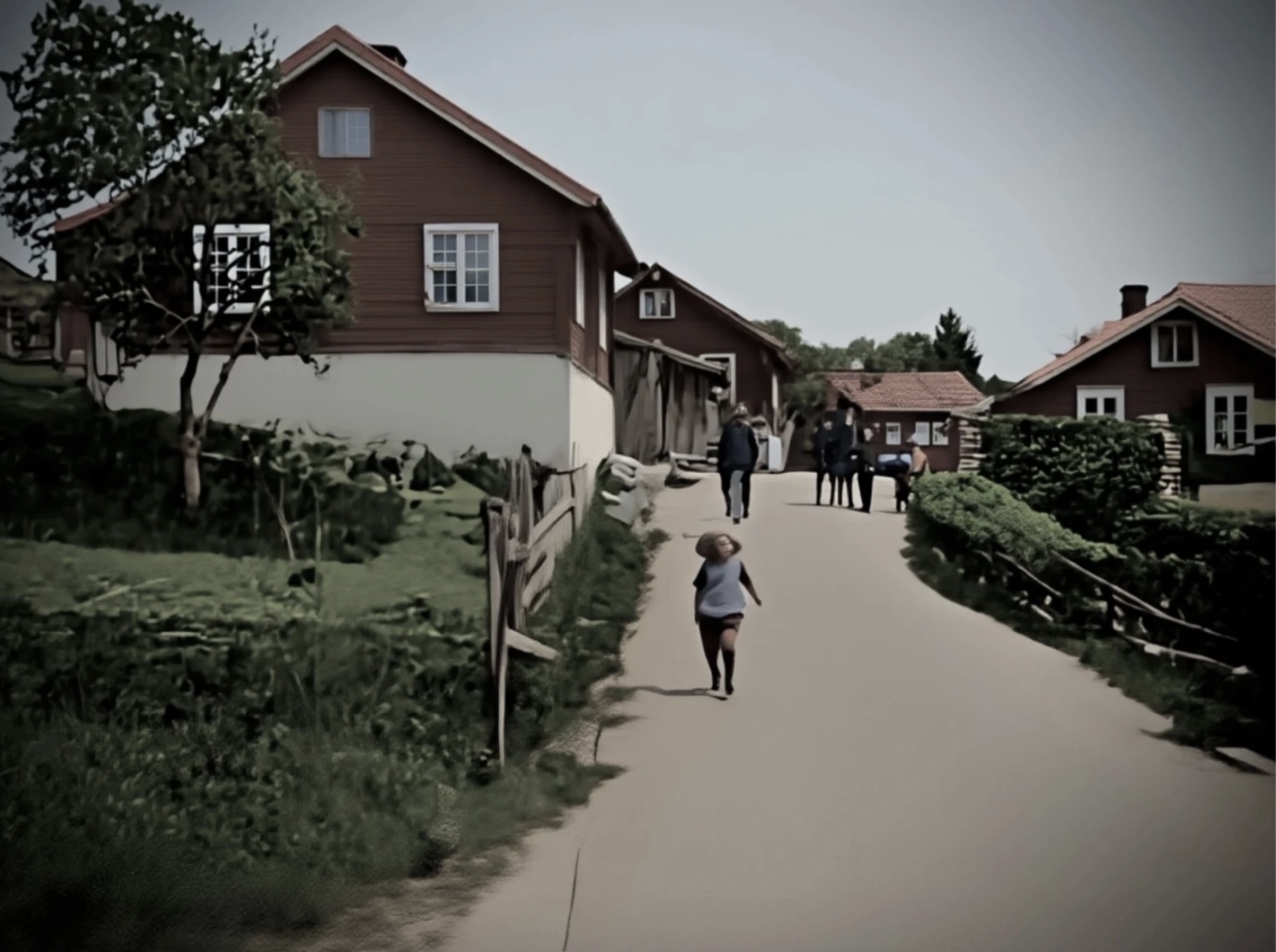 Vi er på nedre Lindalen på Sagene og det er krig i Norge. Kari Funnemark(1902-1982) va gift med Andreas Nilsen. Nils Kristian står te venstre(1924-2016) og va sønn av Kari. Gunhild (Ingeborg) (1928-2019) va datter og står ved siden av bror sin. Søskenbarnet Einar (Godtfred) (1933-2015) står ved siden av tante. Einar va far te: