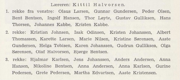 3. rekke: Fritjof Pedersen, Ole Lindalen, Halvor Nilsen. Ole Kastodden, Andreas Evja, Karl Hammerstad, Andreas Kristensen, Aksel Nilsen, Harald Kastodden, Hans Marum.