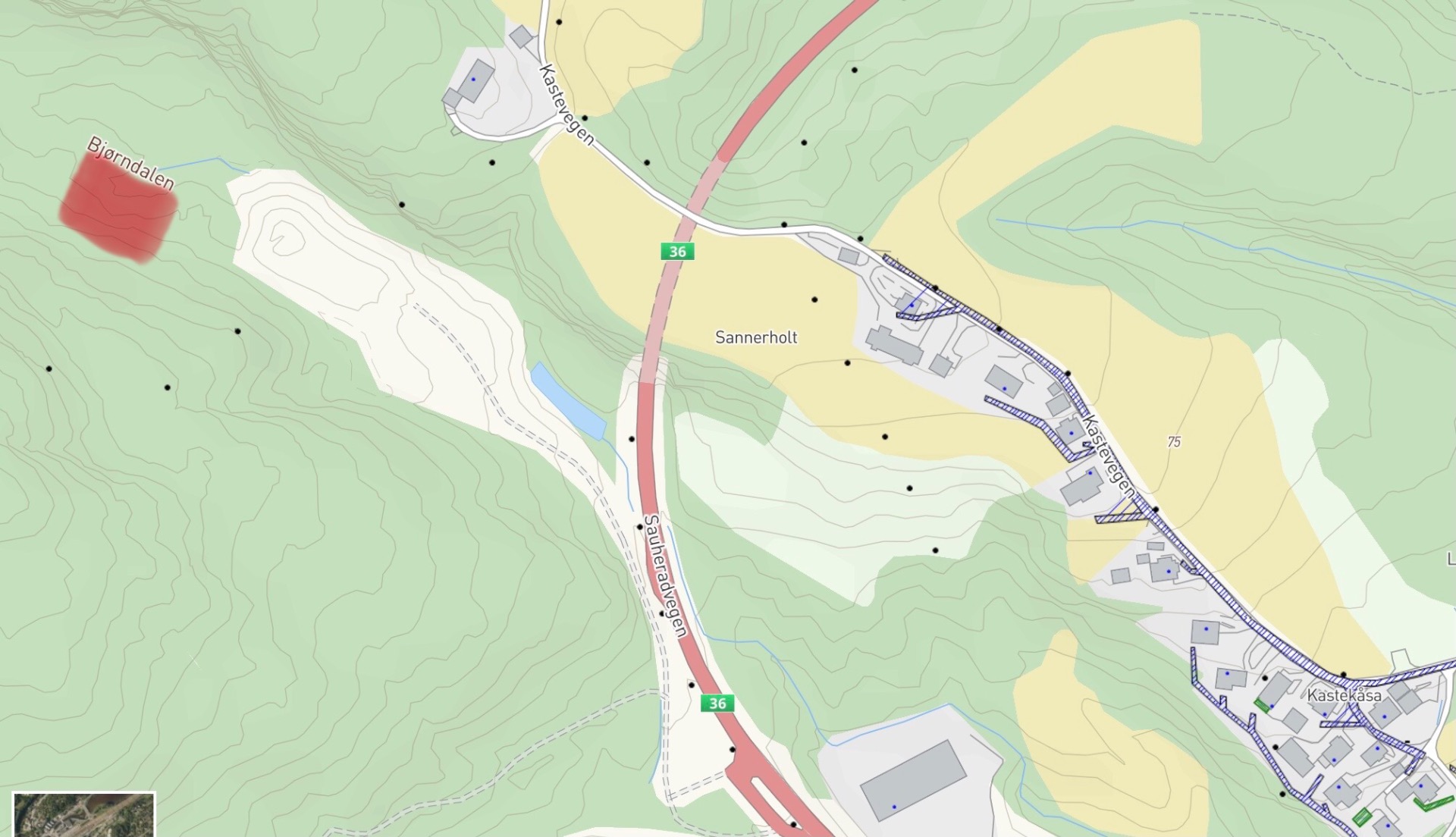 I området der kraftstasjonen skulle komme, lå 5-6 store bygningar