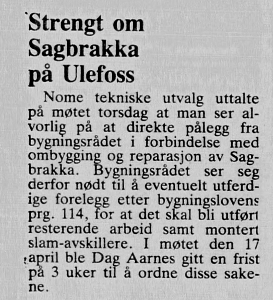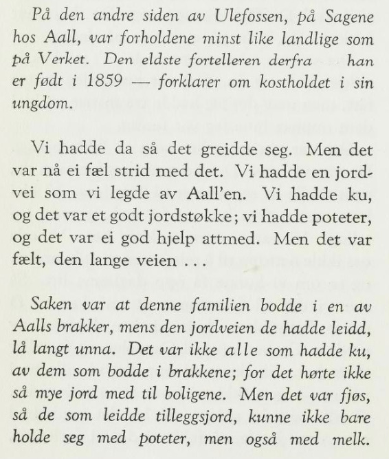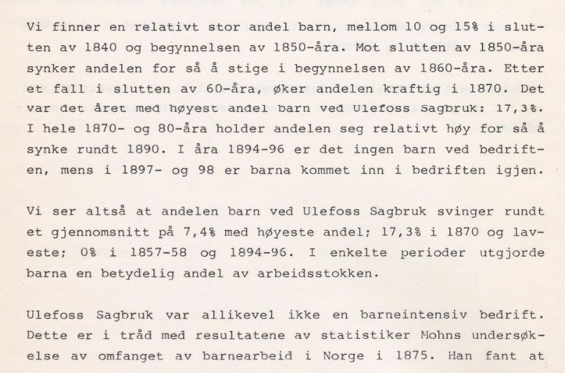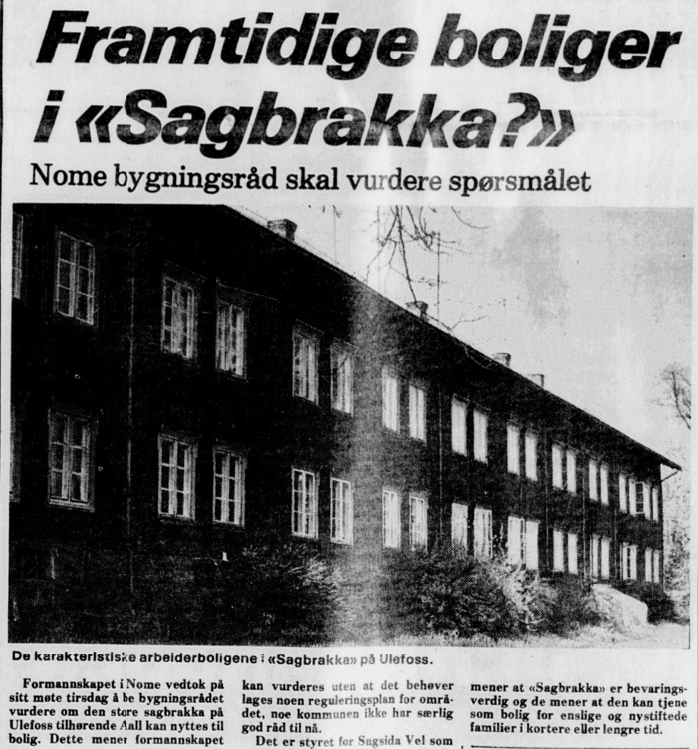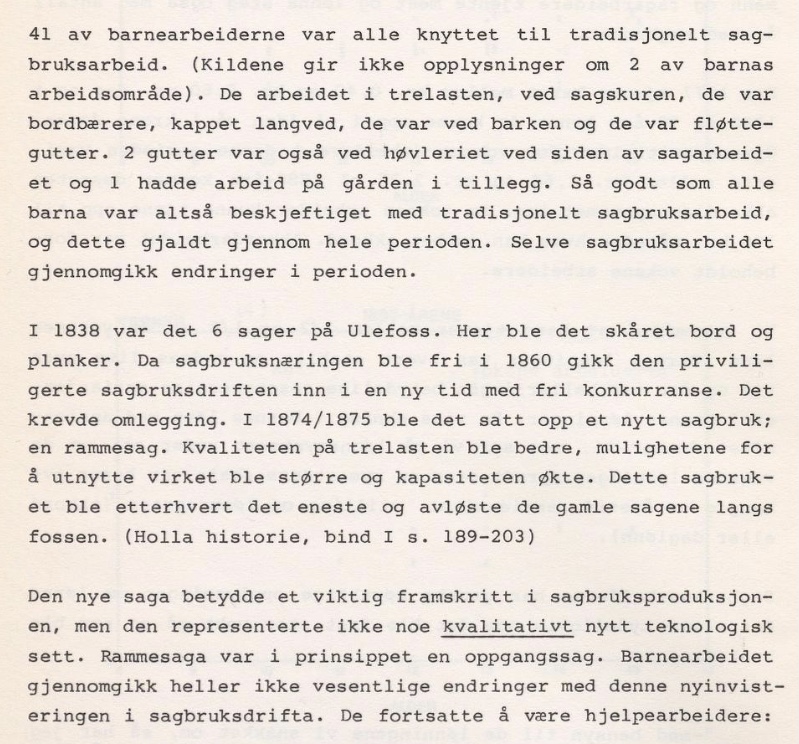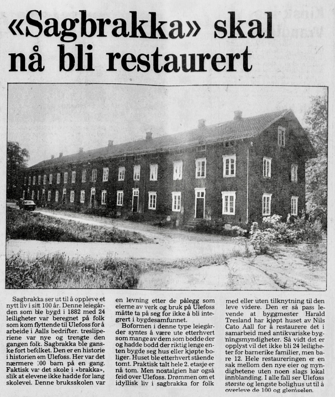 Vi ser her at det rundt 1830 blir sysselsatt langt fleire enn 10 år tidligare. Vi veit også at sagene i ulefossen og jernverket hadde samme eiere fram te 1762. Tidligare har sagbruksfolk også budd på verkssida. Fra rundt 1775-1790 tyder mye på at sagbruksfolk blei samla på sagsida. Forløparen te Sagbrakka blei bygd i denne tida og den har husa mange familiar. Det er da ikke sikkert at det va fleire enn rundt 150 støkker som budde på sagsida gjennom 1700 tallet. Den gamle hvite «barakken» har gitt tak over hue for mange: