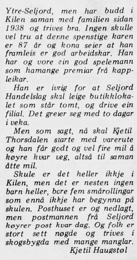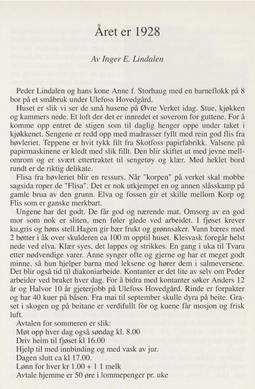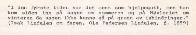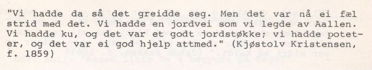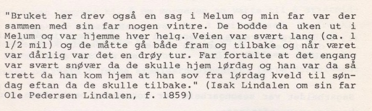 Geir Helge Nilsen: « Under krigen heldt dei geit og høns i Nedre Lindalen og fødde til og med ei ku dei henta frå Funnemark og dreiv heim langs Skaravegen».
