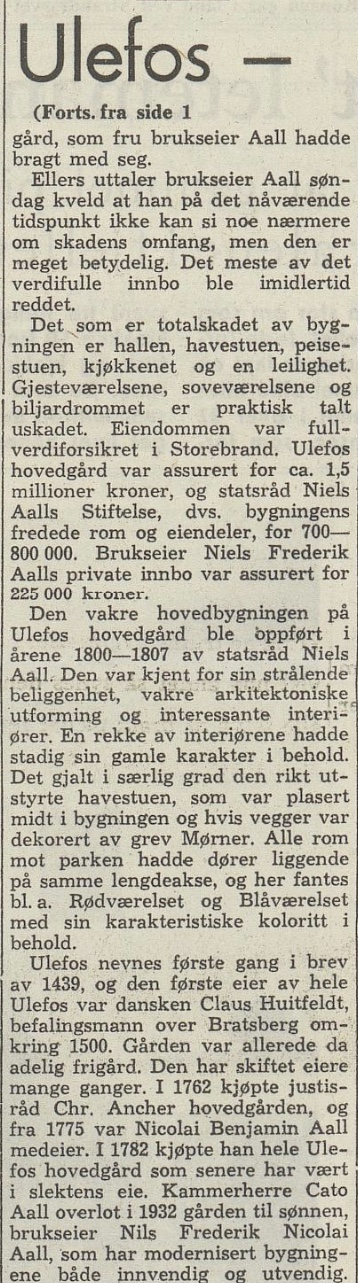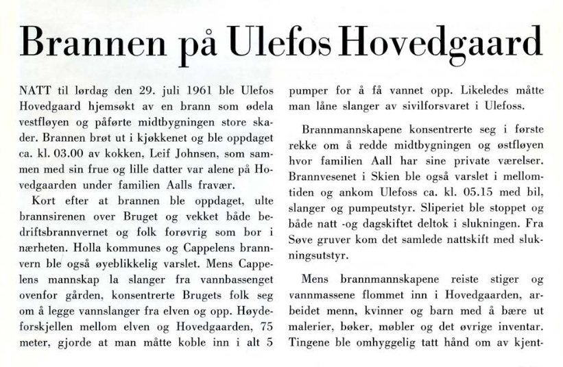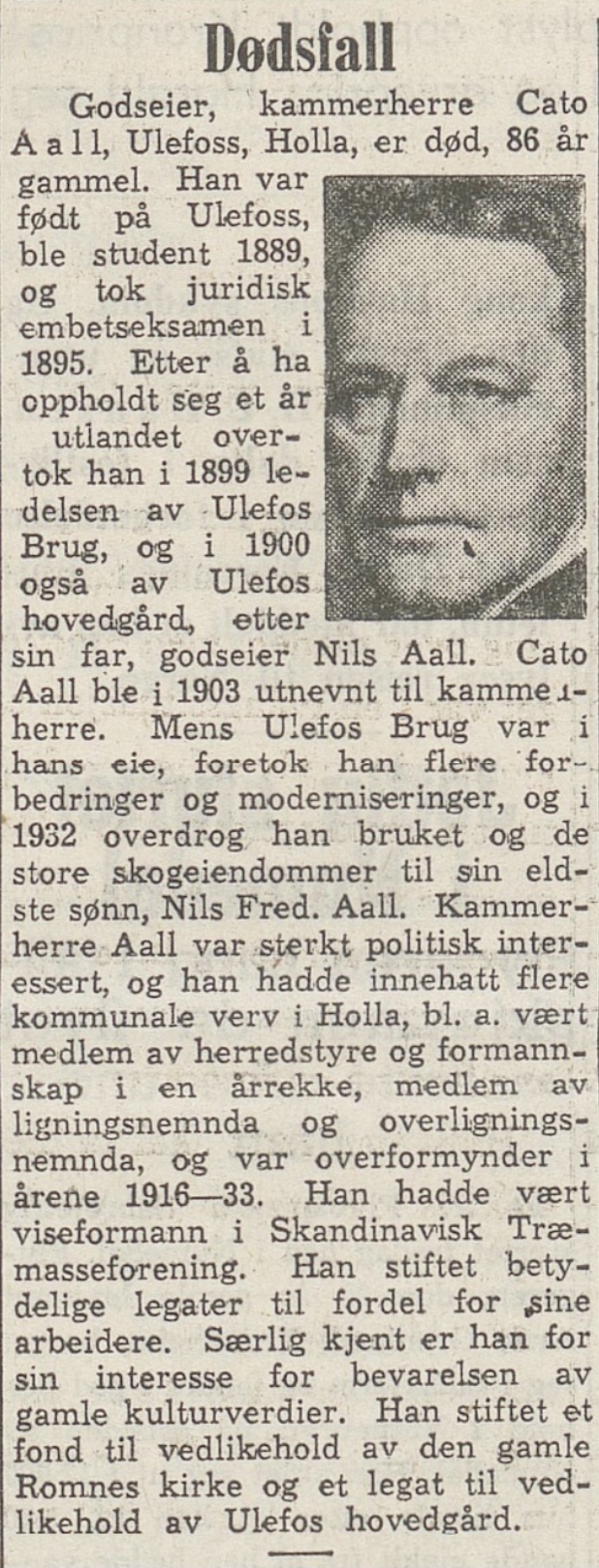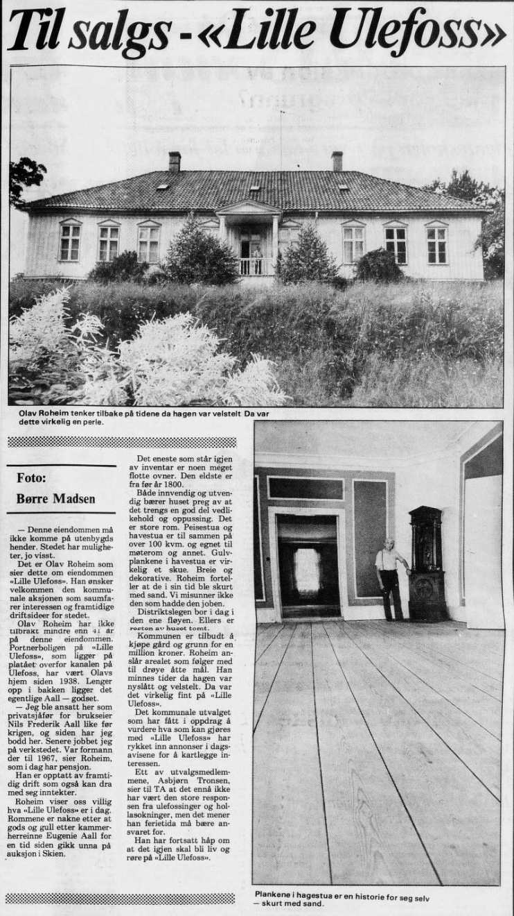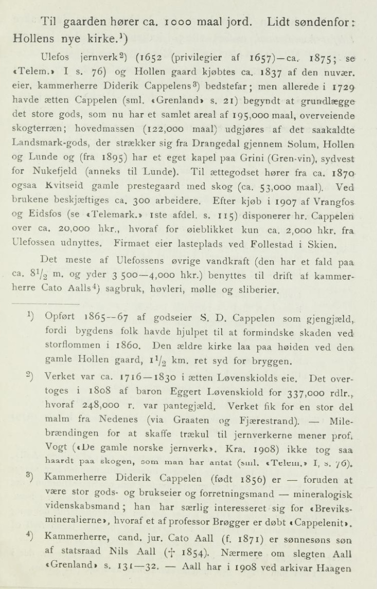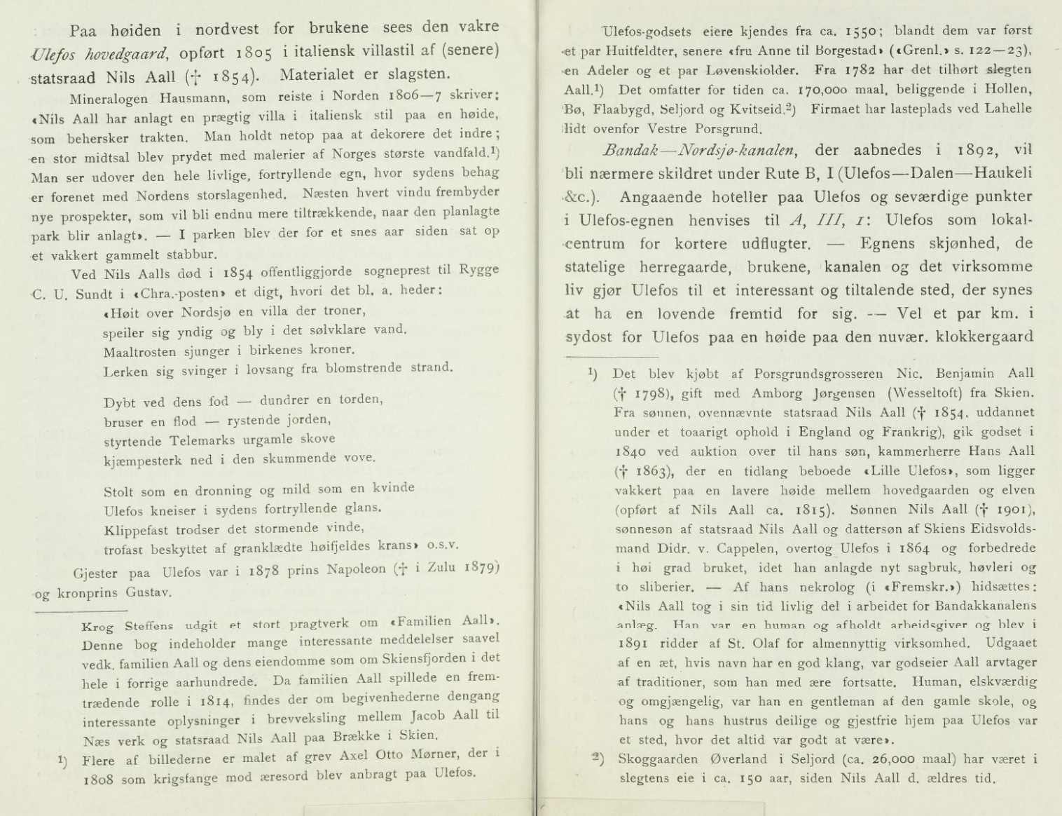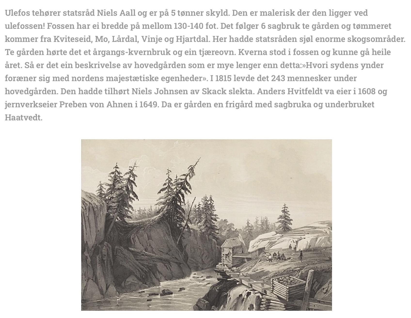 I 1908 blei boka «Slækten Aall» utgitt. Her får vi ei detaljert historie om eiere og litt om hva de eide under Ulefos Hovedgård. Du kan inn å fordype deg her, om du vil lesa alt:
