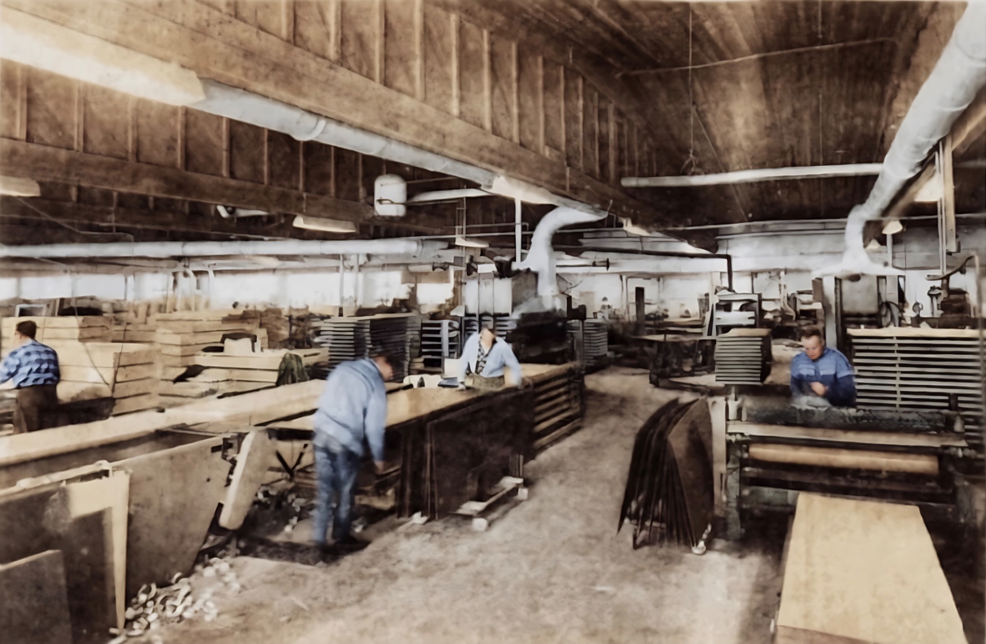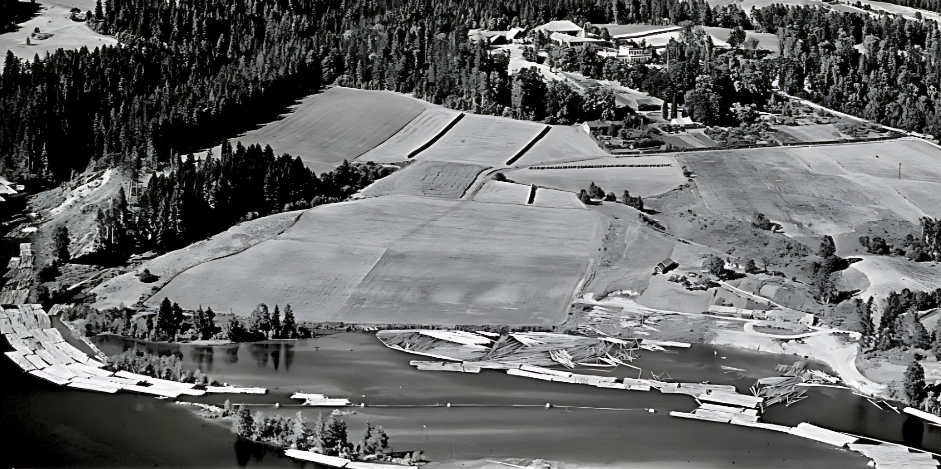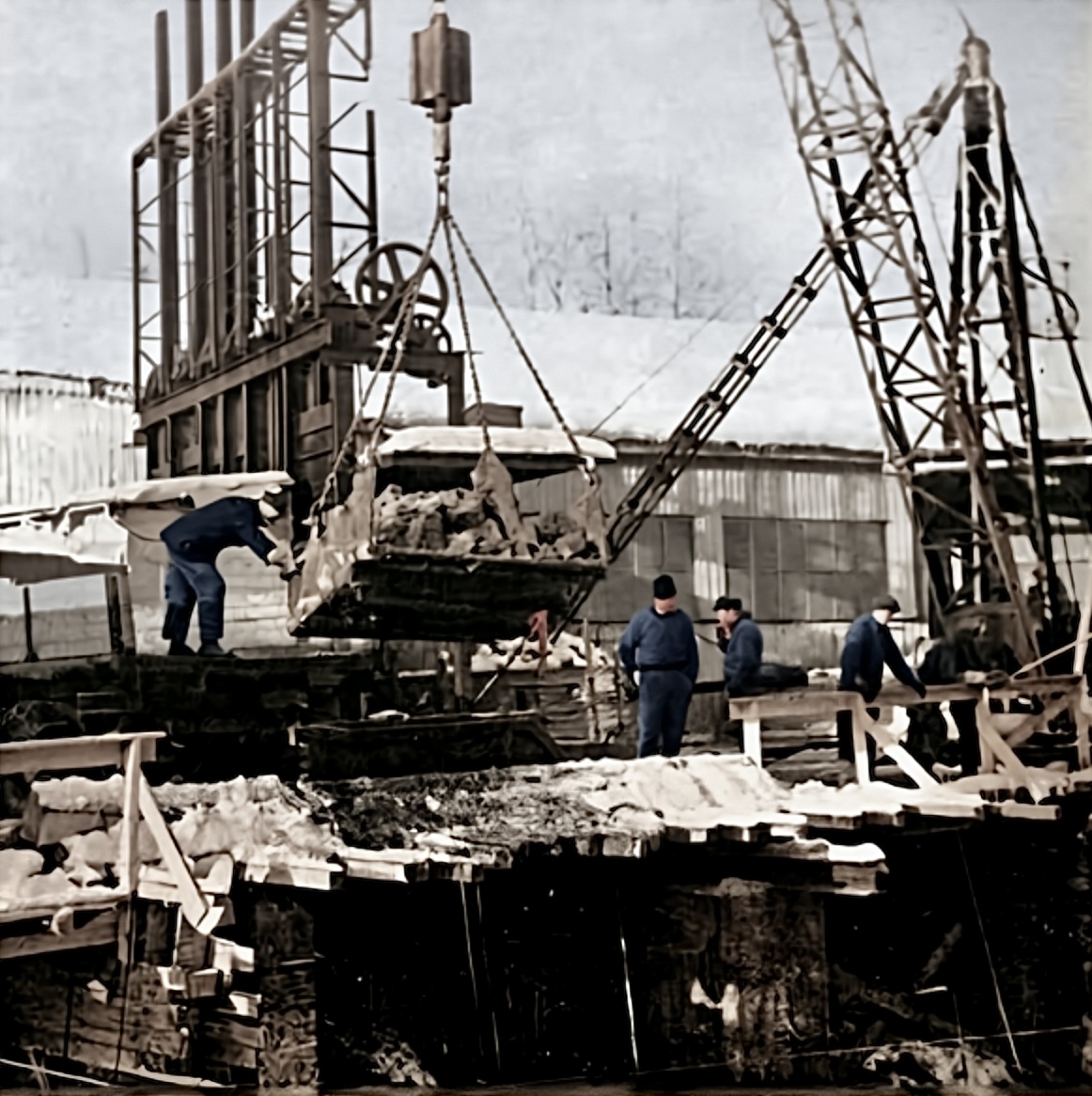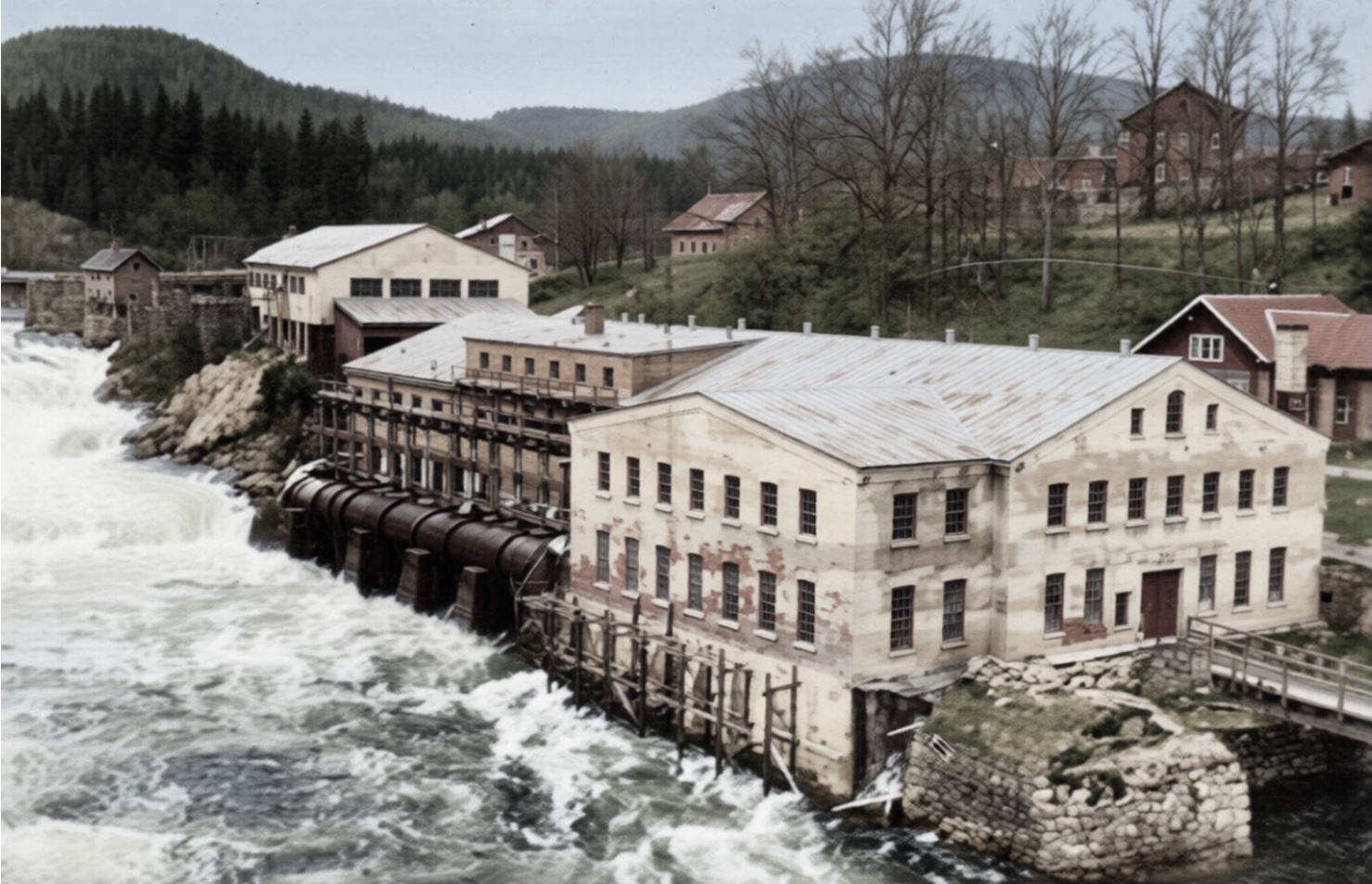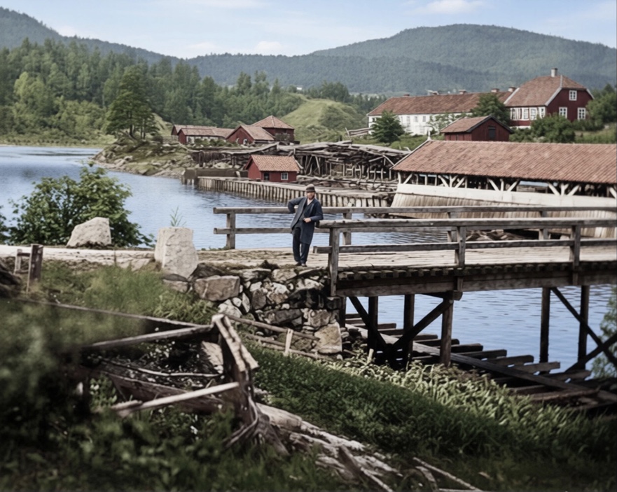 Året er 1922 og vi ser tresliperiet. I tresliperiet blei tremasse hakka opp og det ferdige produktet blei solgt te papirfabrikkar. Cellulose-ballane blei frakta ner på skinner: