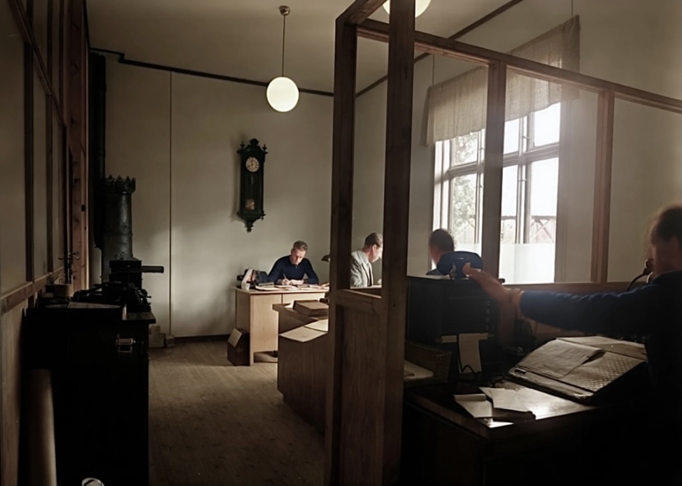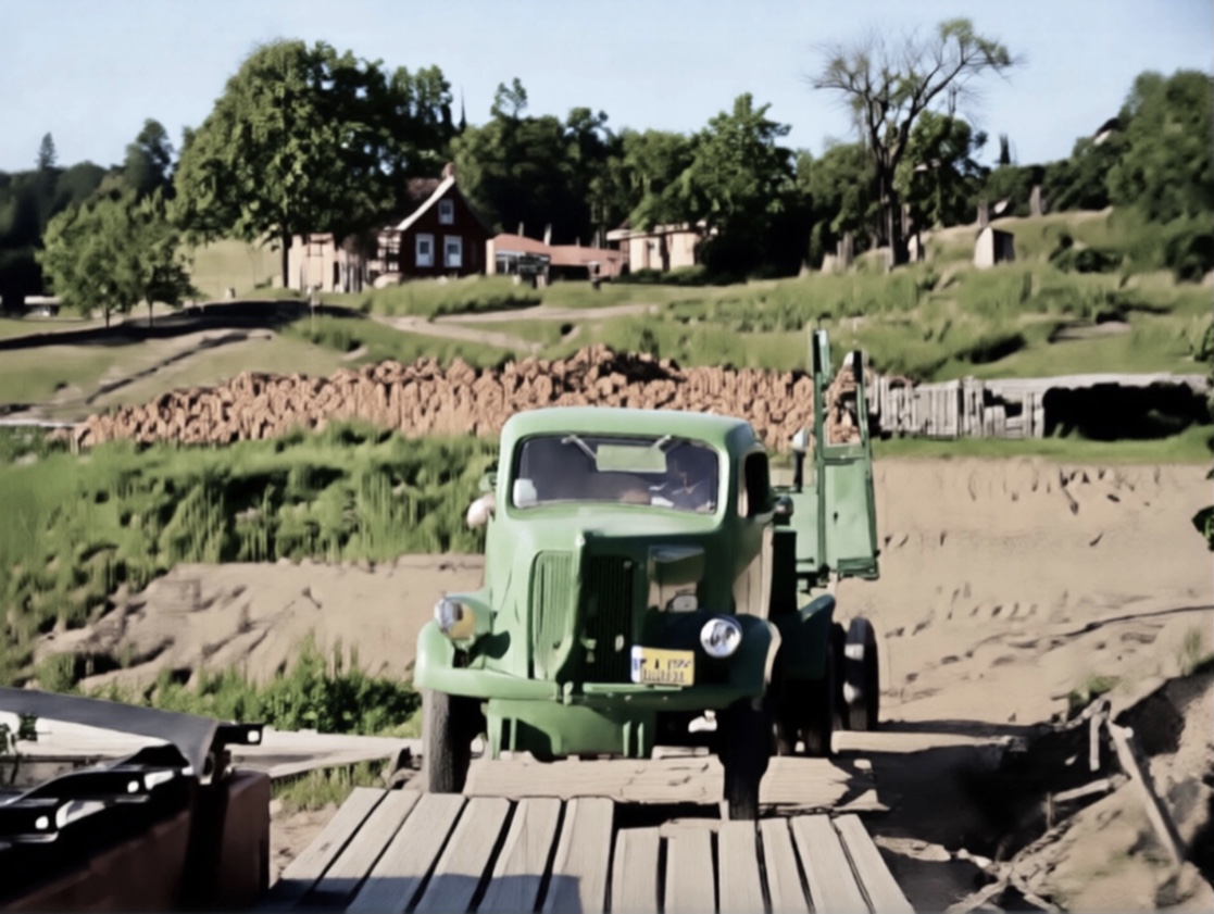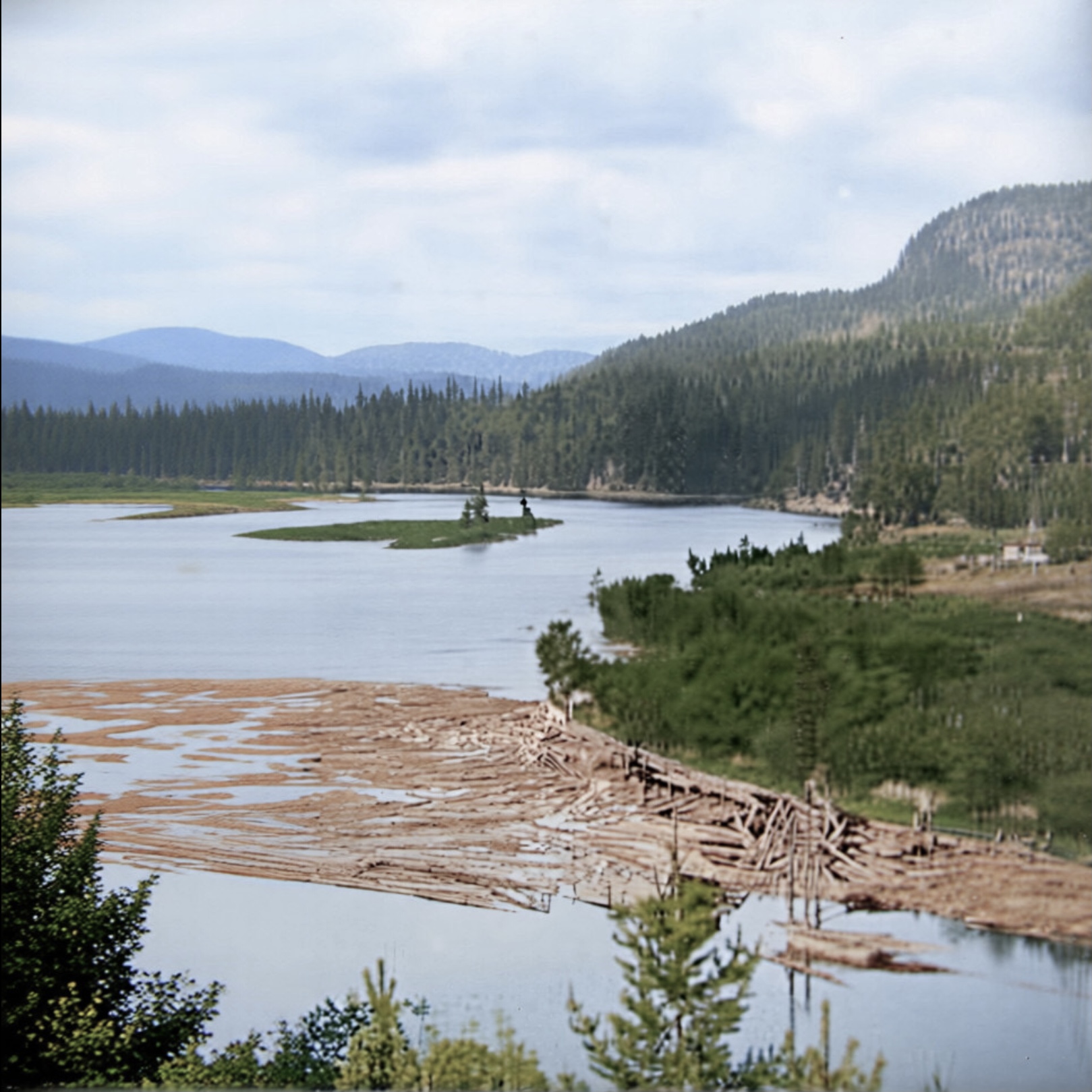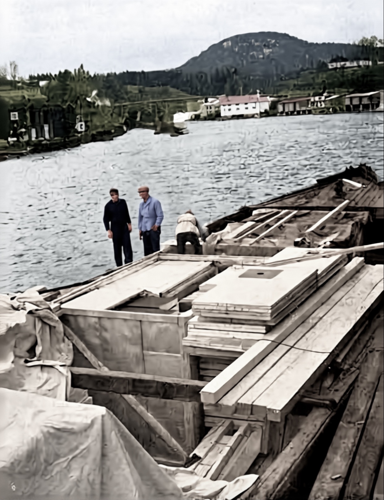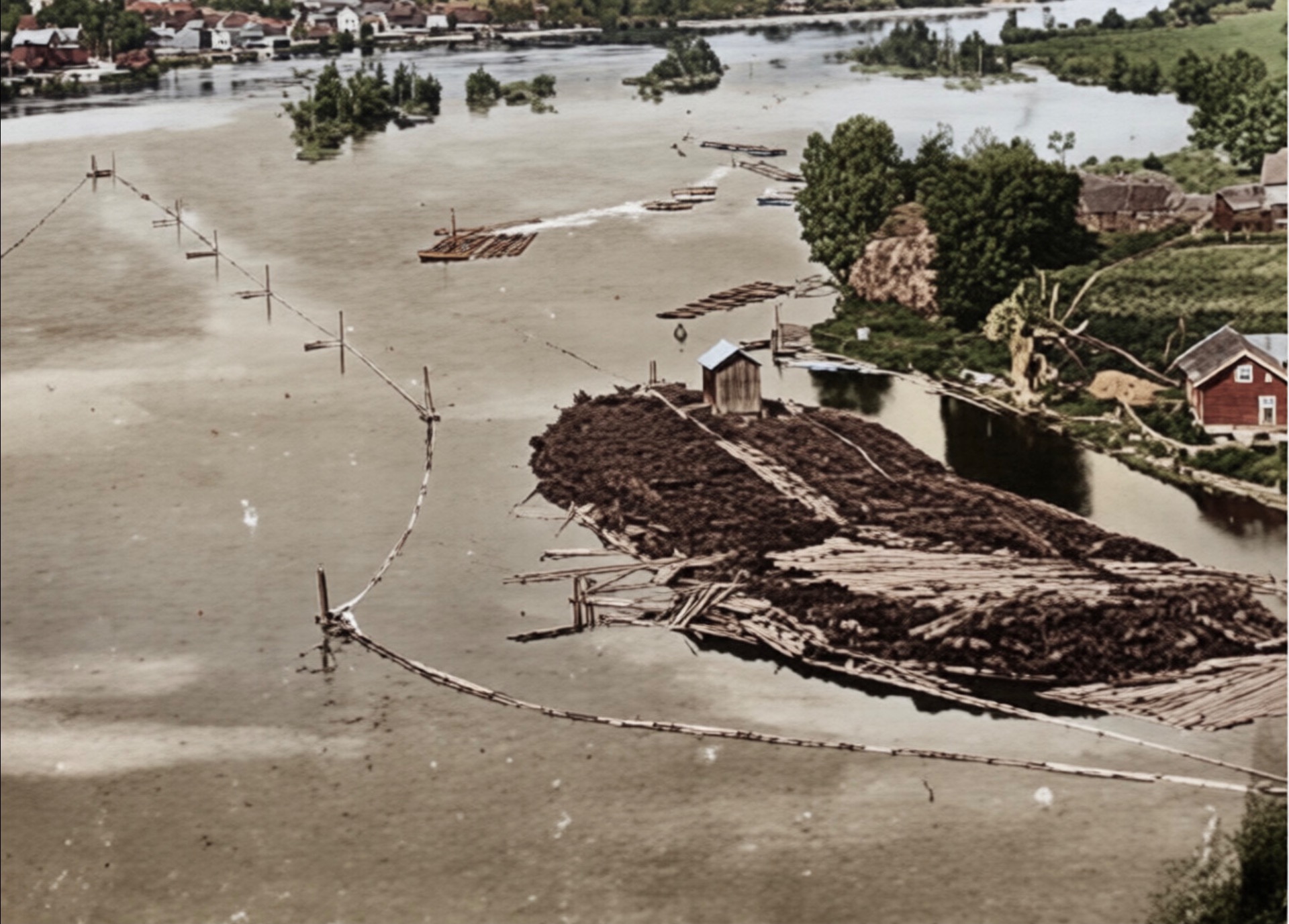 Året er 1922 og vi ser tresliperiet. I tresliperiet blei tremasse hakka opp og det ferdige produktet blei solgt te papirfabrikkar. Cellulose-ballane blei frakta ner på skinner: