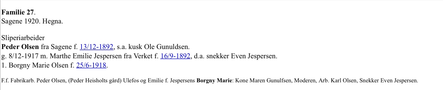 Asborg Lindalen blei gift med sagarbeider John Pedersen i 1935.