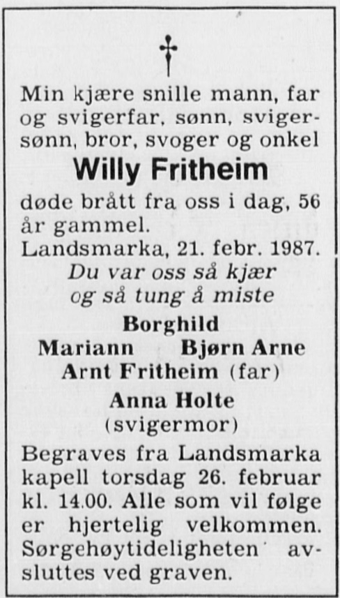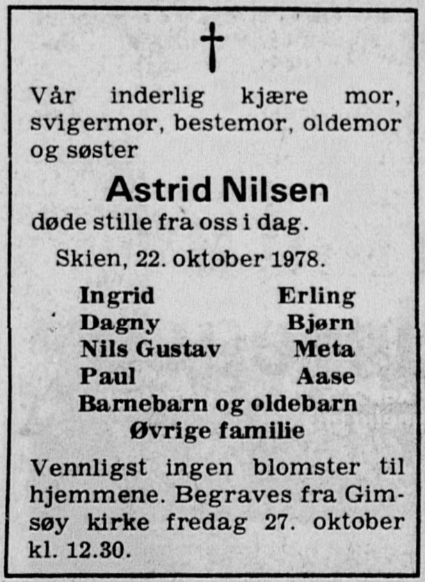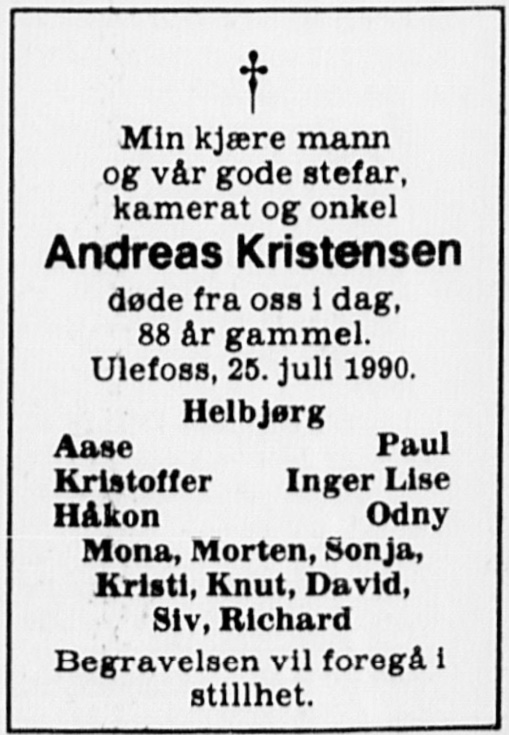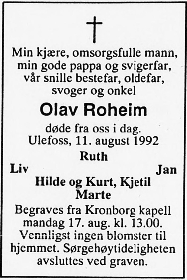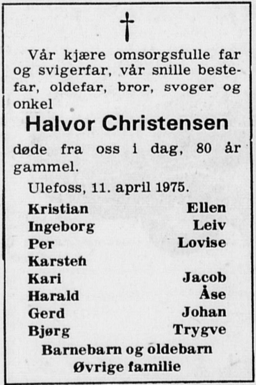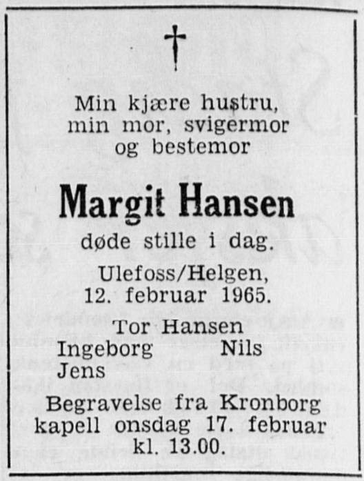 «Da Thor fekk beskjed om at mora va død, hadde han sagt: «Nei, ho kunne vel ikkje leva all sin dag ho heller!»