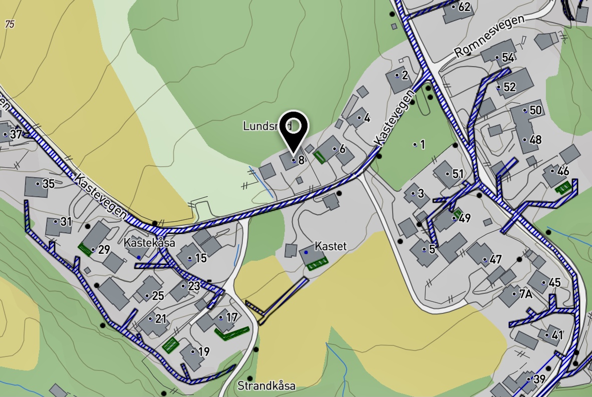 1: Her bur Ambjørg Dahl i dag. Eivind Andersen budde her tidligare. Plassen ligger under Berja-paraplyen. 2: Her bur Halvard Dukane med familie i dag. Blå strek: Ukjent plass. Grønn strek: Uthus med doar? Området har også navnet Dritarberja. Her stod det fleire utedoar som gav navnet: