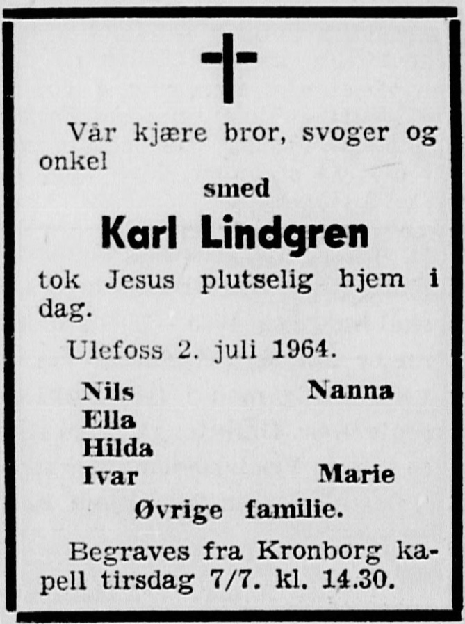 Kristian J. Lindalen gifta seg med Saave Sæli fra Skien.