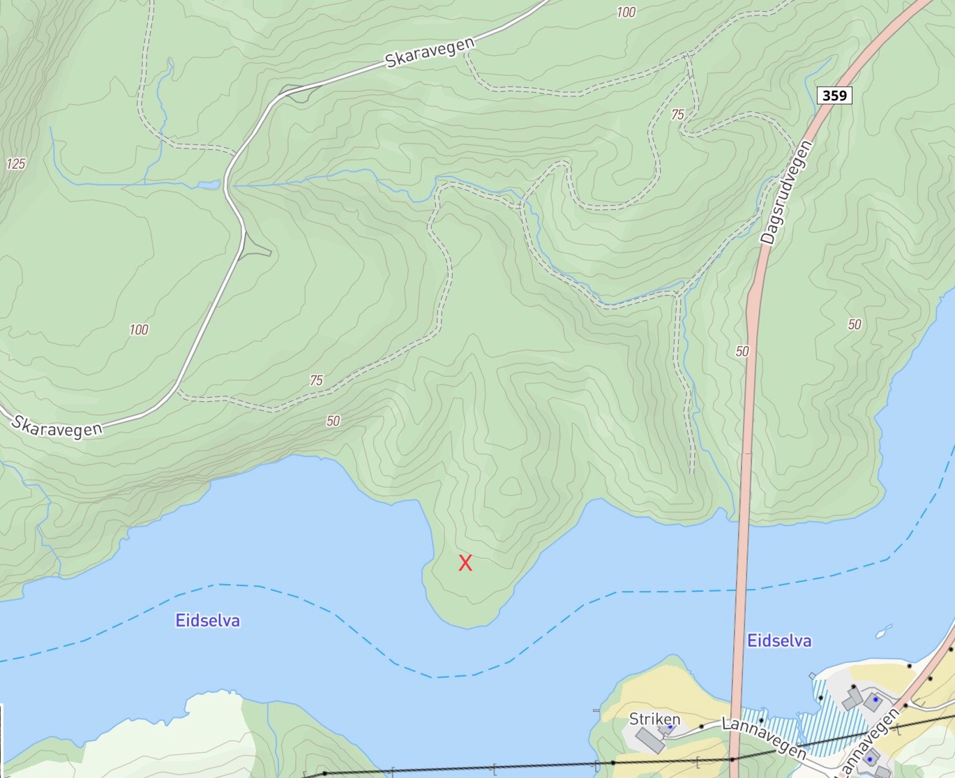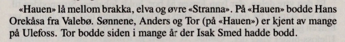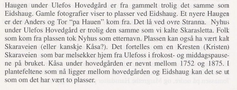 Plassen Hauen lå ytterst på pynten mot Eidselva og blei også kalla Kølaåsen: