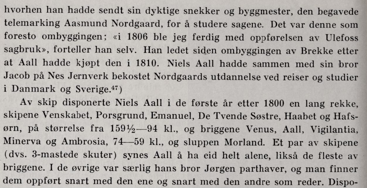 Her ser vi den første av Aall slekta som eier de 4 sagene oppe ved ulefossen fra 1789, Nicolai Benjamin Aall. Under ser vi faren Niels Aall (1702-1784):