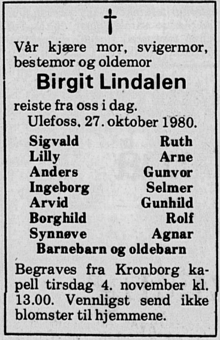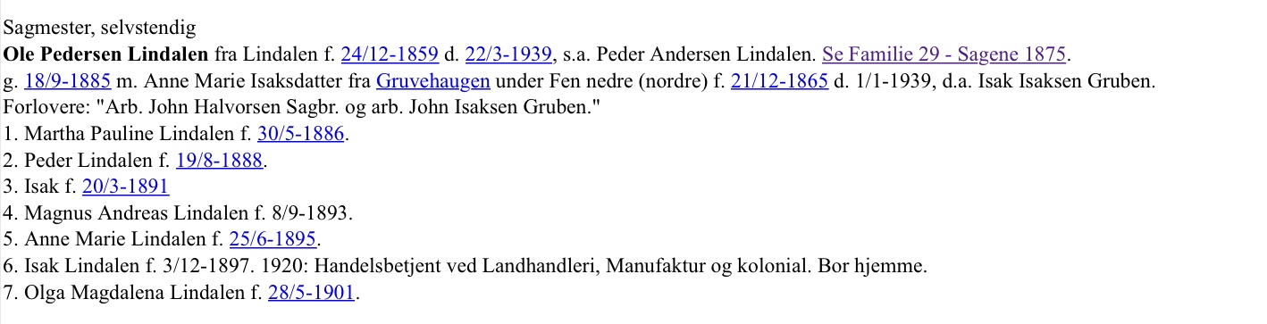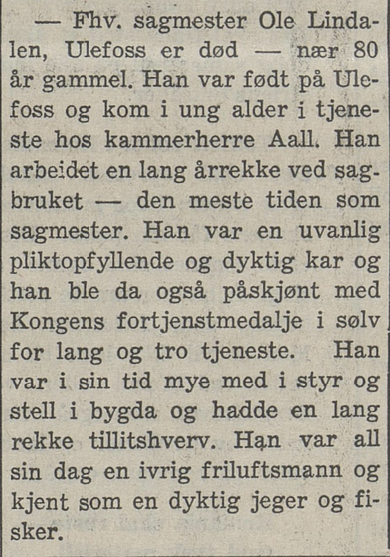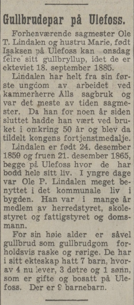 Ole Halvorsen og kona Anne Andersdatter navngav plassen sin Lindalen ein gang før 1834. Hvor mange etterkommere som fekk og har Lindalen som etternavn er ukjent, men det er mange!