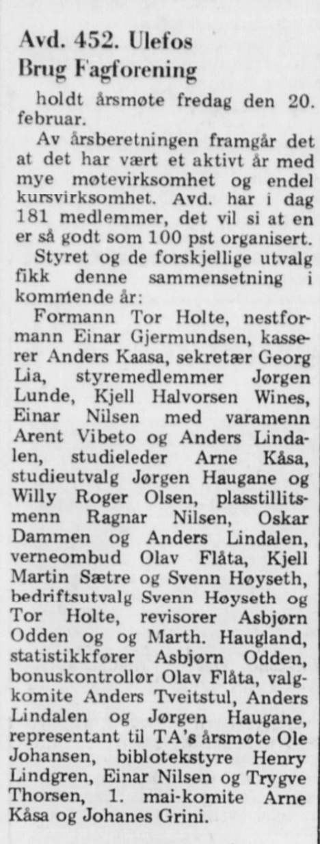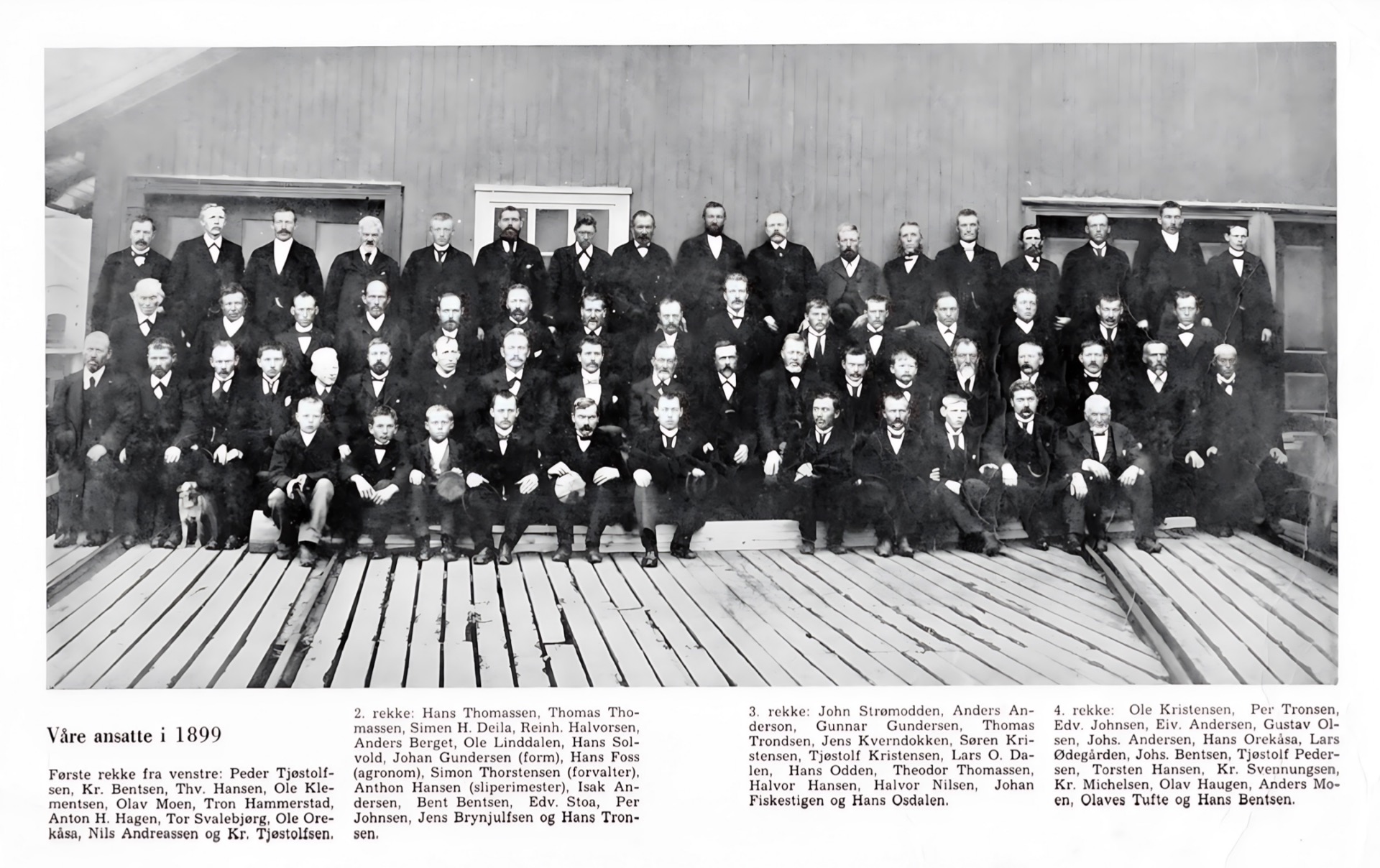 1. rekke fra venstre: Karl Hansen, Ingebret Bærland, Kristen Knutsen, Torstein Halvorsen, Peder Olsen, Ole Solvold, Ole Løite (formann), Andreas Lindalen (nestformann), Nils Pedersen, Hans Odden, Ingolf Nilsen.