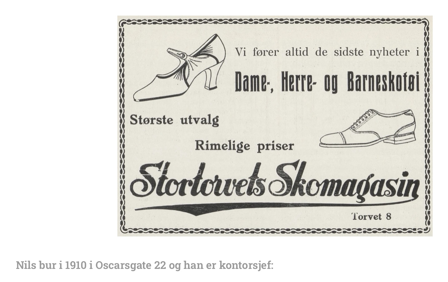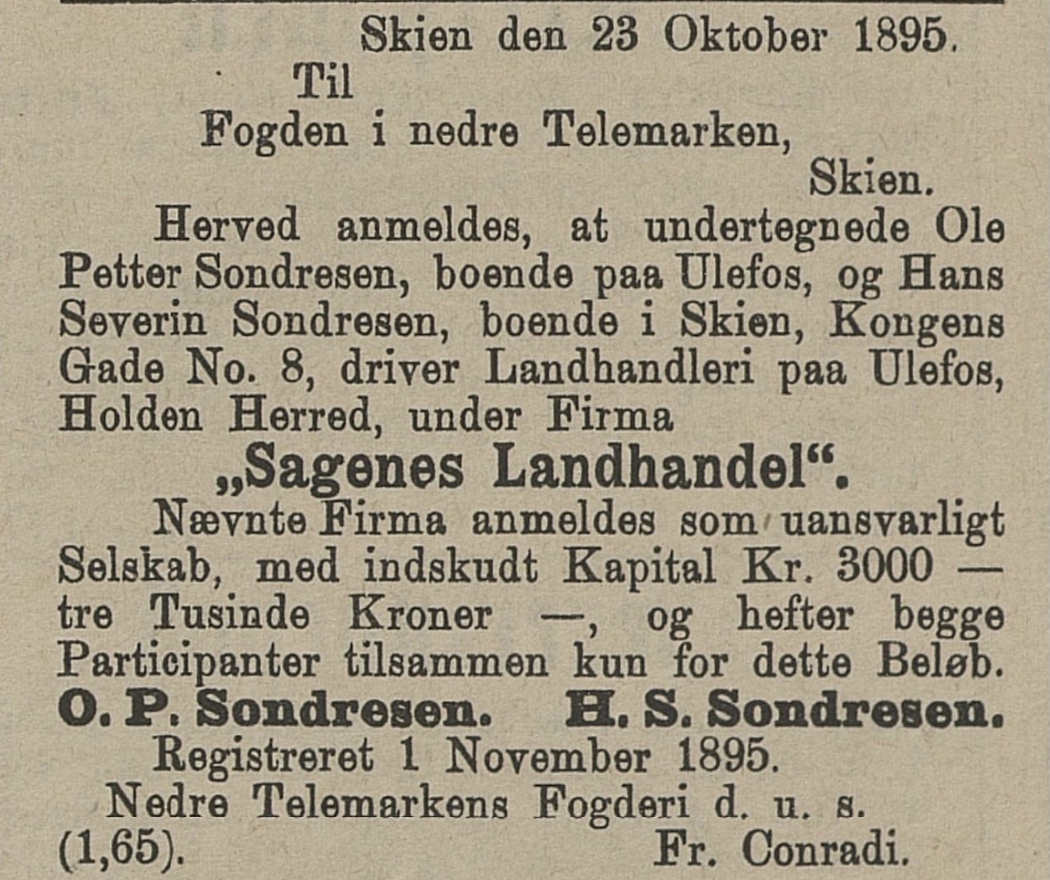 Her ser vi hotelldrivar Ole Petter har fått med eldstesønnen Hans Severin te å drive landhandel på Sagene.