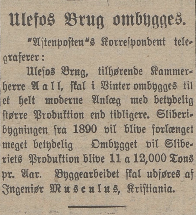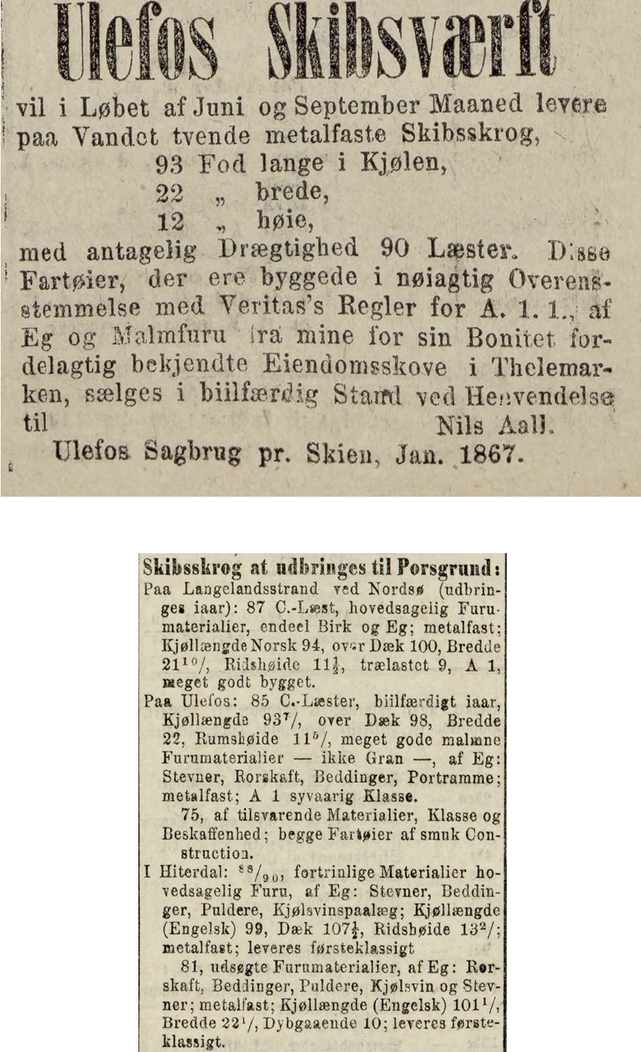Ulefos Skibsværft blei starta av Nils Aall i 1867. I januar 69 har Aall fleire ting på gang: