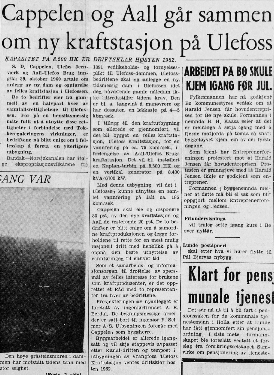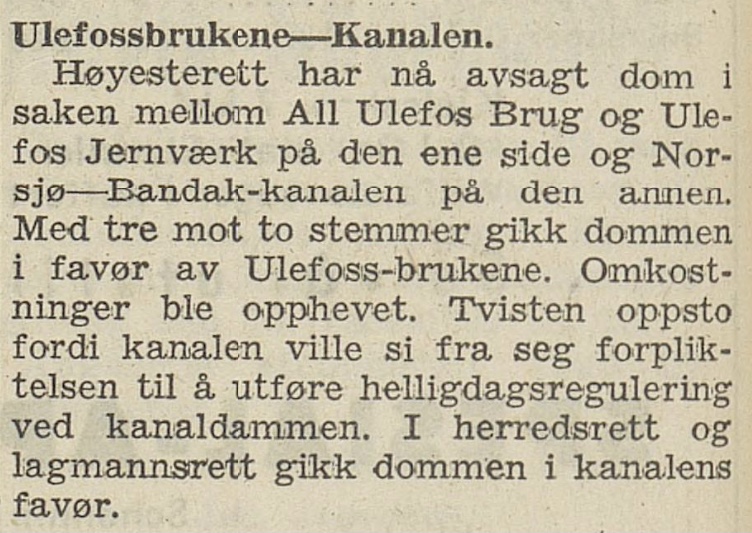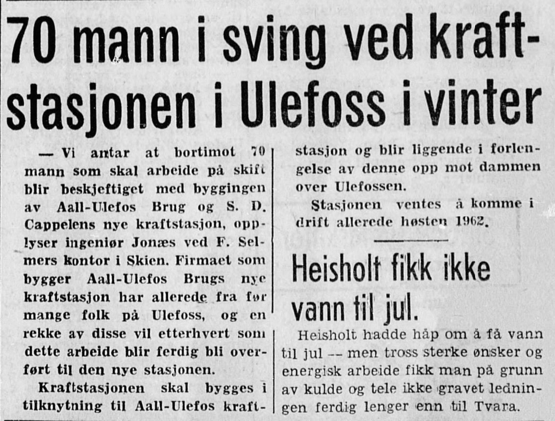 Krafta og mulighetene som lå i fossen va tidlig attraktiv. Gården Ulefoss er nevnt i 1439 og her har noen av de første hollasokningar slått seg ned lenge, lenge før. Elvefisket her må ha vært et privilegium som har blitt passa på.