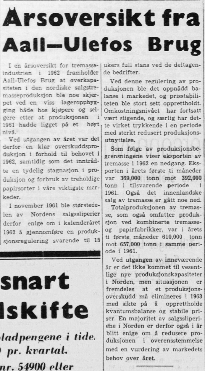I 1690 er det 4 sager i fossen. Det blir skjært 12000 bord og heile nedre Telemark skjærer 17500 tesammen. Ulefos Sag stod da for nesten 80% av produksjonen i Telemark. Året etter blir det skjært heile 40 000 bord og totalen i nedre Telemark er 48 000. I 1762 er det fremdeles 4 sager som går i ulefossen og videre har eiaren Tvara Sag: