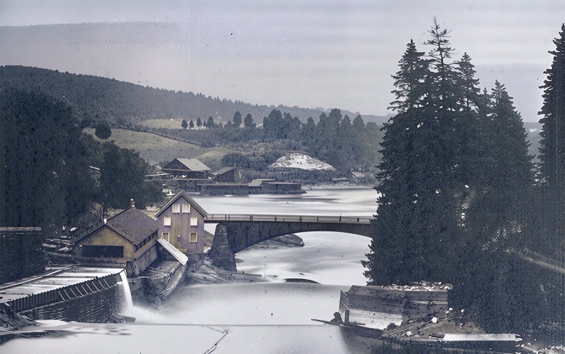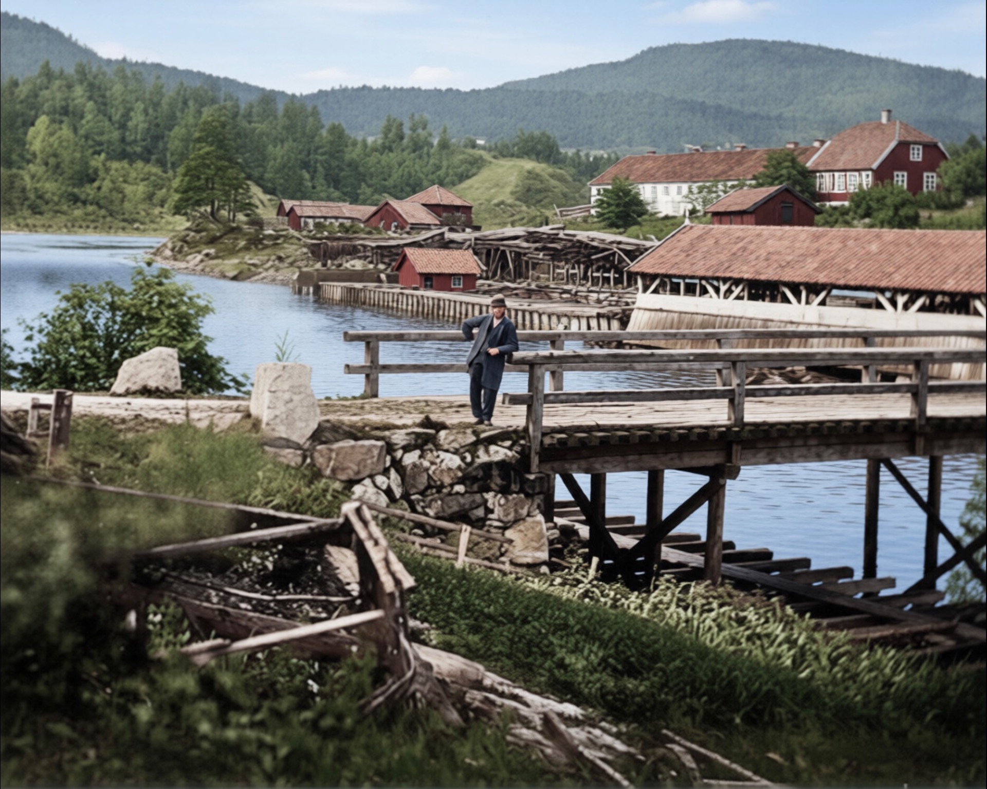Året er 1934 og nybrua er akkurat ferdigstilt og gjør seg godt i kameralinsa!