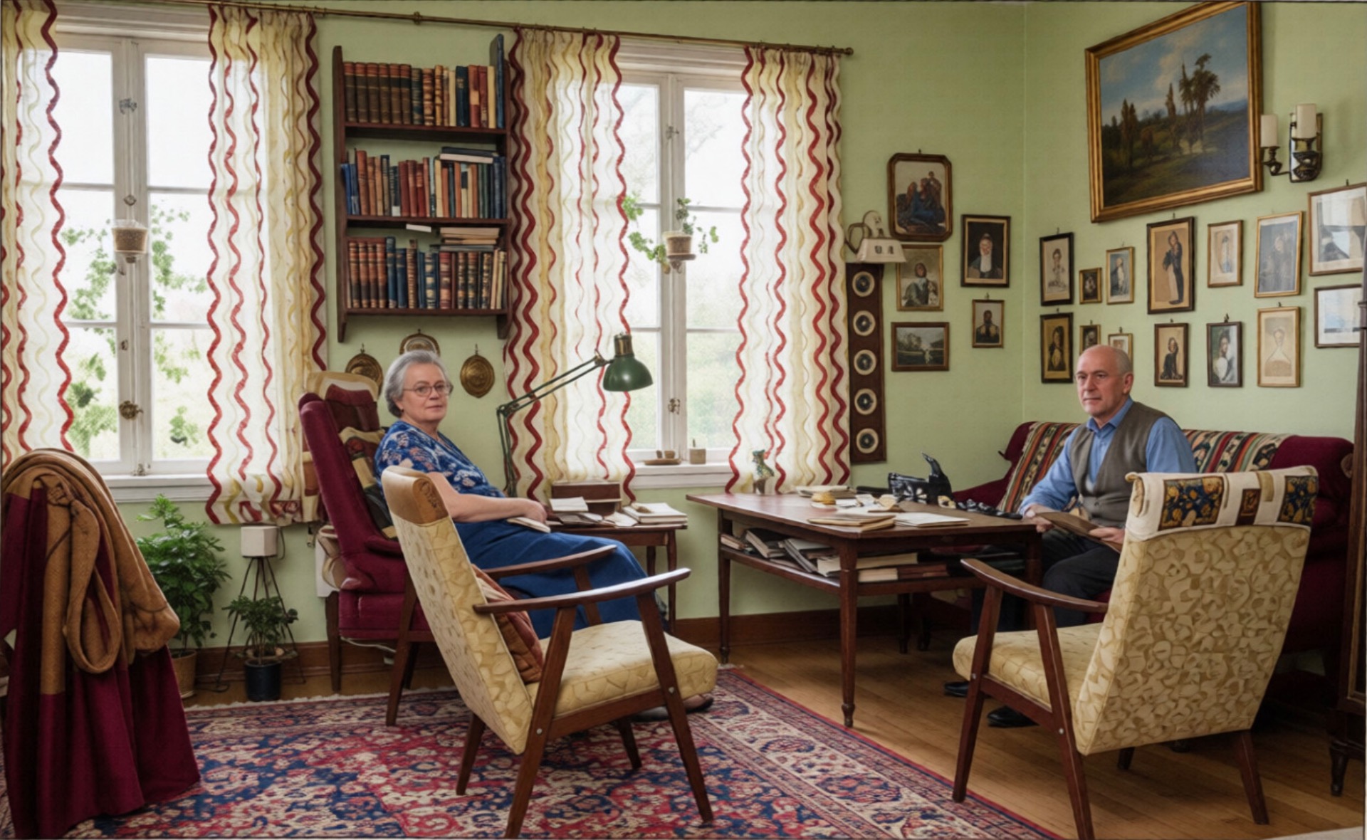 Fjesa stemmer ikke, men interiøret blei bra. Gudrun(1907-2003) og Hans Marum(1907-1981)