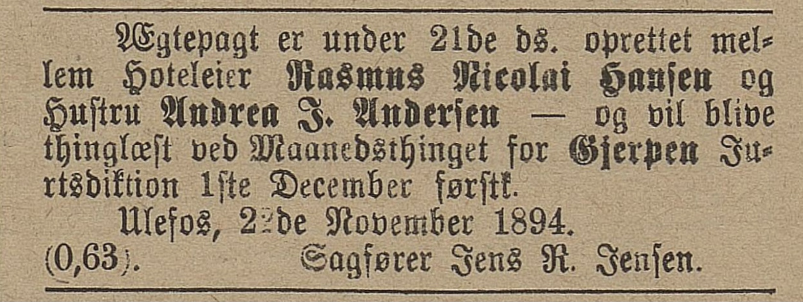 Sakfører Jens Rudof Jensen va her i april. Han va sønn av lensmann Knud Jensen på Storebø i Helgja. Jens va født i 1861 og hadde tatt embedseksamen i 91.