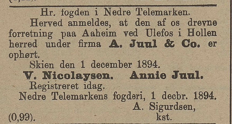 Rasmus Nikolai har fått beskjed av faren om at det va muligheter for å drive handel i heimbygda og i 1867 er han tebake i Holla. I 1869 er han frihandler og adressa er Ulefos og året etter er han landhandler. Han har overtatt farens geskjeft oppe på Lanna da han kom heim. At han fører seg Ulefos er ikke noe rart. I avisene fra denne tida er Lanna også beskrivi som øvre Ulefos.