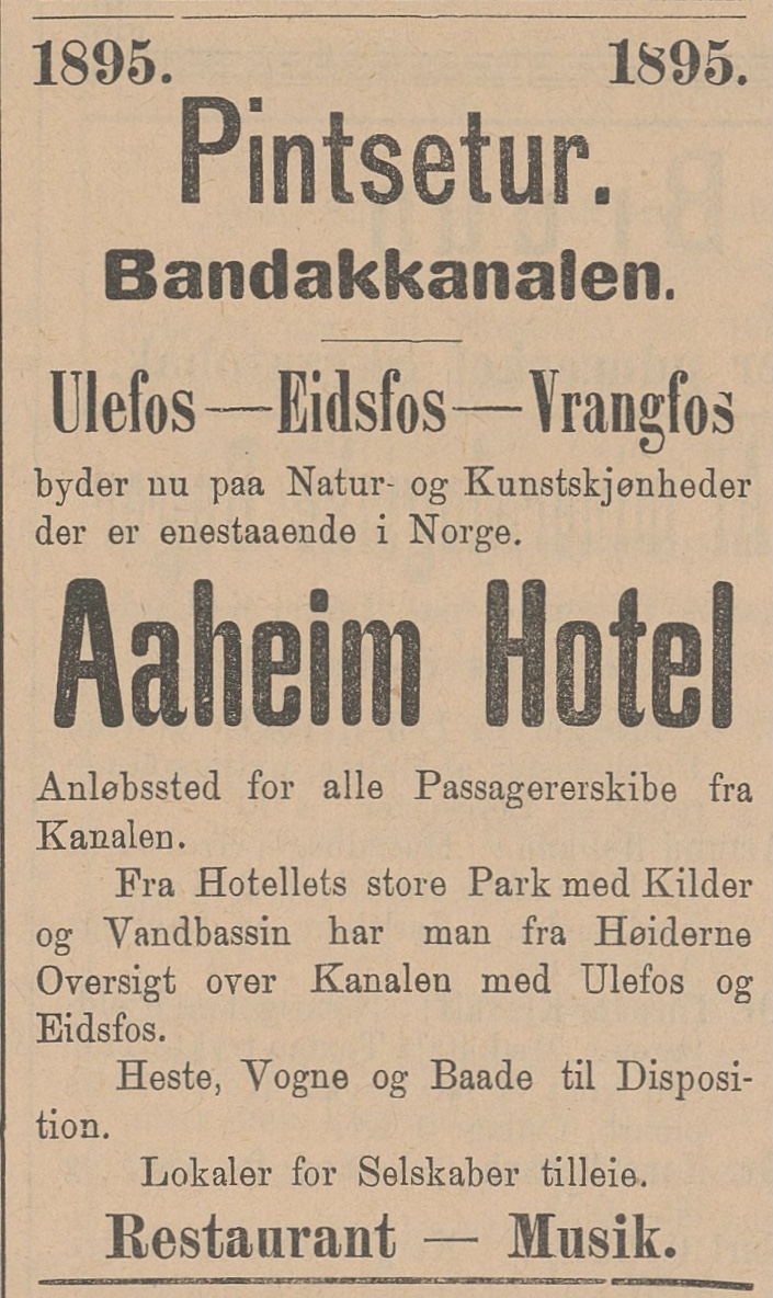 Juli: Aaheim er ombygd og har rikelig med plass. I ei anna annonse som ligna, stod det at Aaheim kunne ta i mot gjester fra slutten av juli måned detta året.