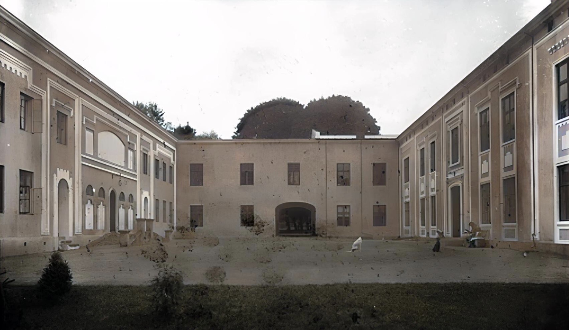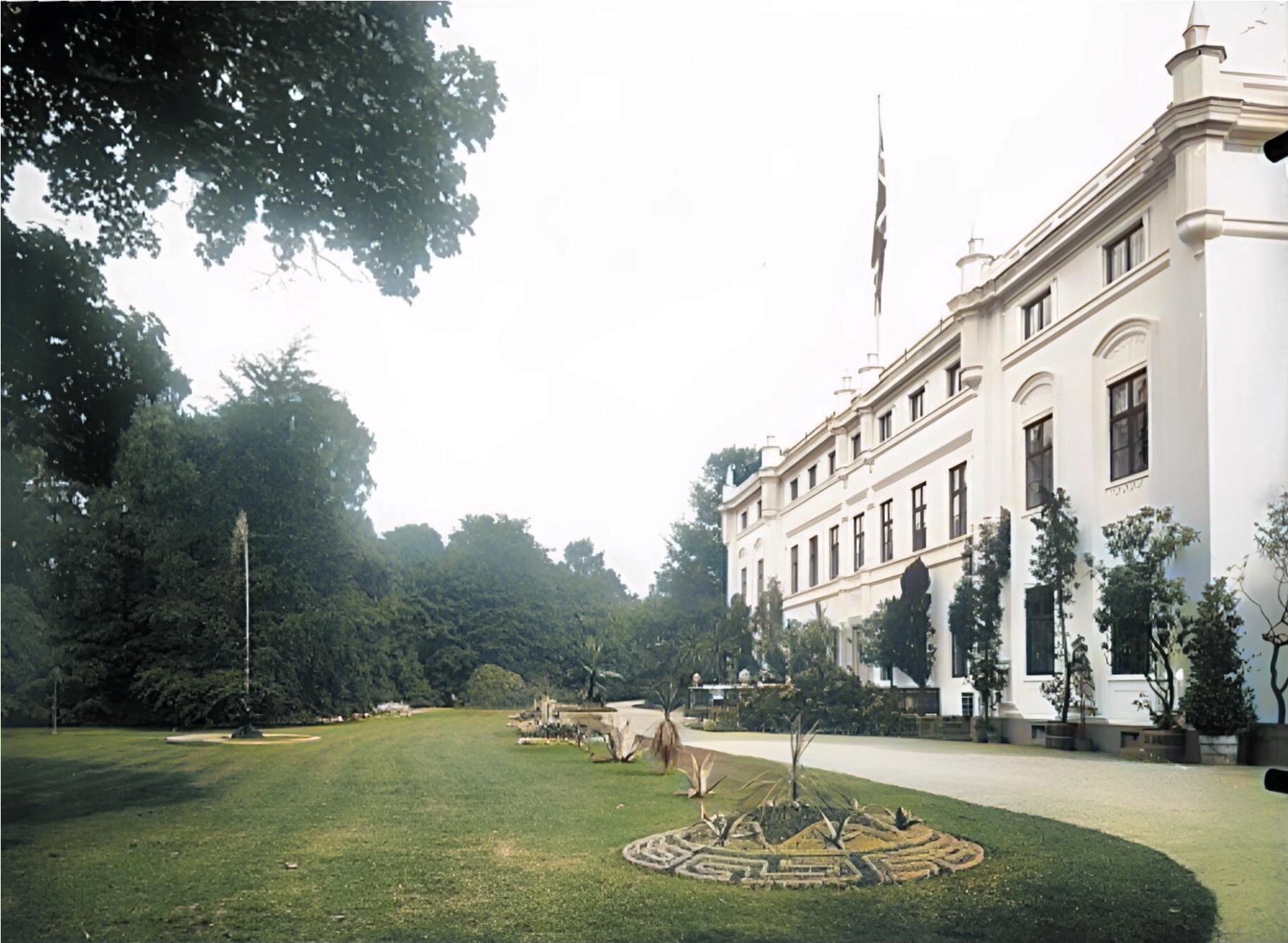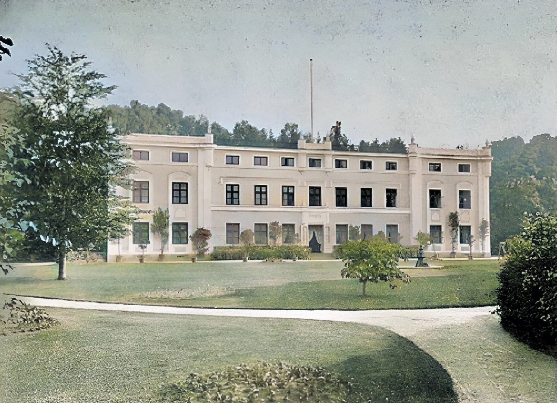 Holden i nåværande form stod ferdig i 1857/58. Er detta fotografiet fra 1860 åra? Detta må væra et av de eldste fotografia av bygget. Vi legger også merke te det mye mindre damanlegget enn i bildene tidligare og den humpete plenen! Slik kan vi se for oss parken så ut, da gamlehuset ennå eksisterte.