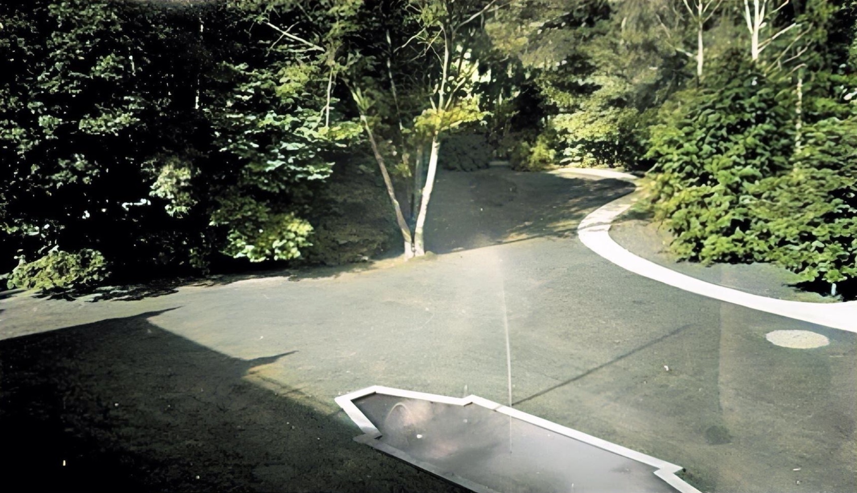Her kan det se ut som om bildet er tatt før plenen spirar ordentlig. Sandgangane er kritthvite og heilt nylagte.