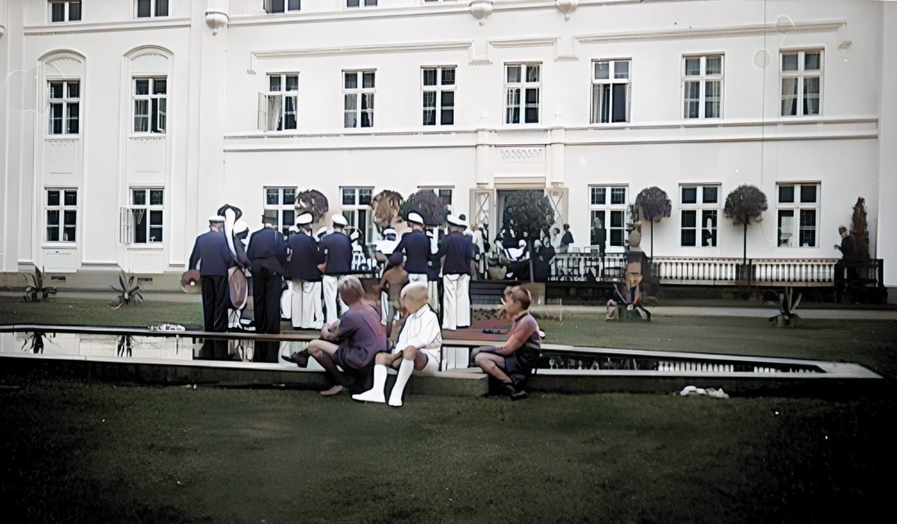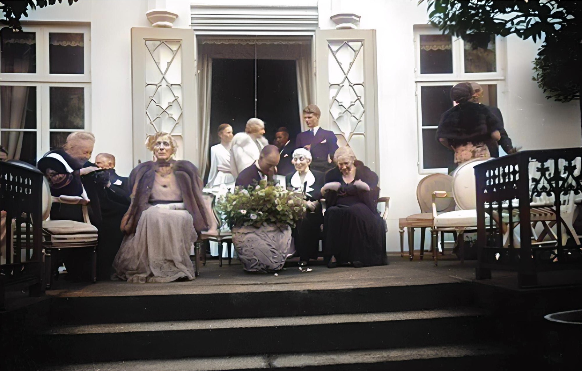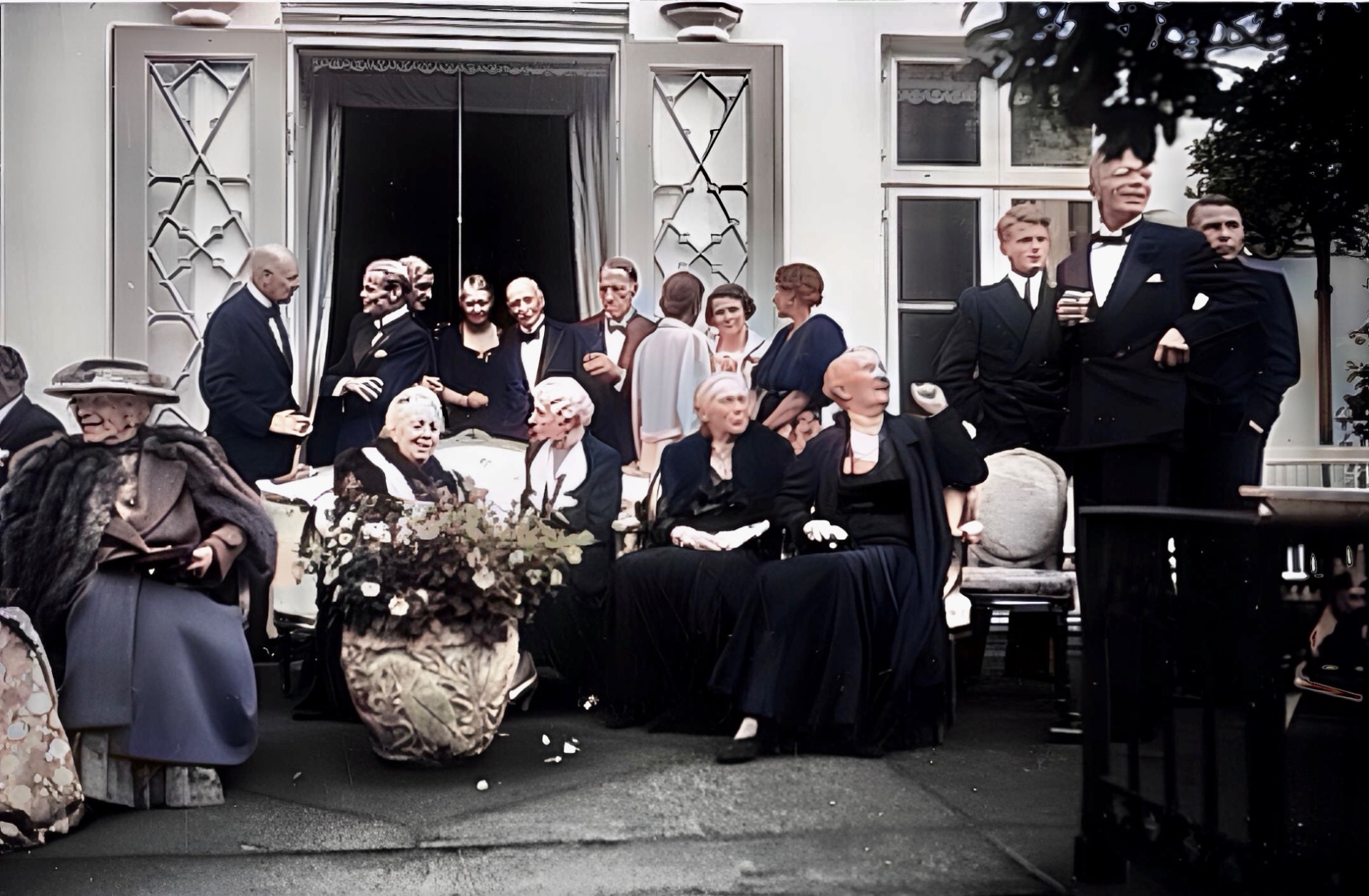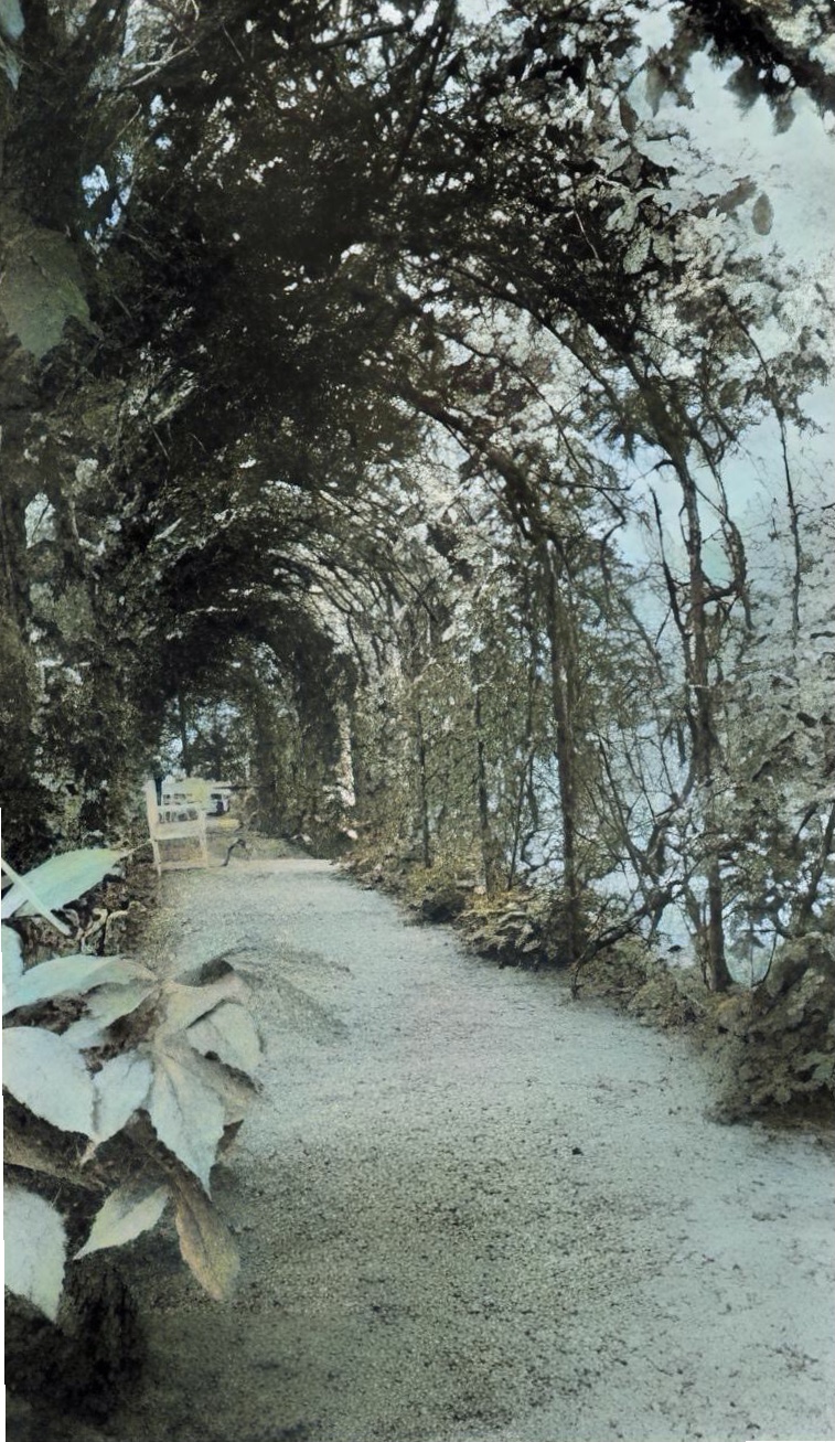 1926. Her har vi ein artig plass å gjømme seg vekk på om varmen eller regnet blir plagsom. Den het «Aristolochia hytta» etter planta som blei brukt. Denna plantefamilien har rundt 400 ulike variantar. Er det gartneren som poserer foran sitt verk? Vi ser også eksotiske kaktusar som har kommi ut fra drivhuset. Detta at hageanlegga va viktig for de rike va ikke noe nytt. Nede på kontinentet hadde blant anna Solkongen i Frankrike hatt gigantiske og svært kostbare hageanlegg 250 år tidligare.