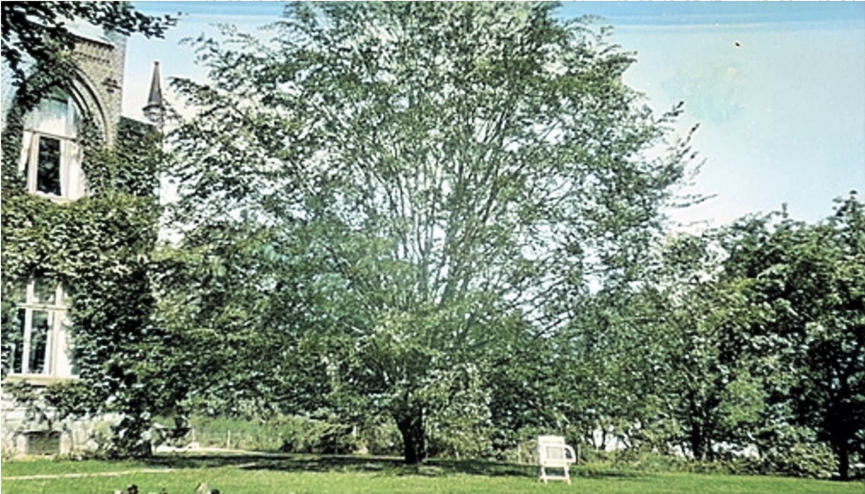 Stort lauvtre som det fremdeles er mange av og som kunstmaleren August Cappelen tegna heime i Holden.