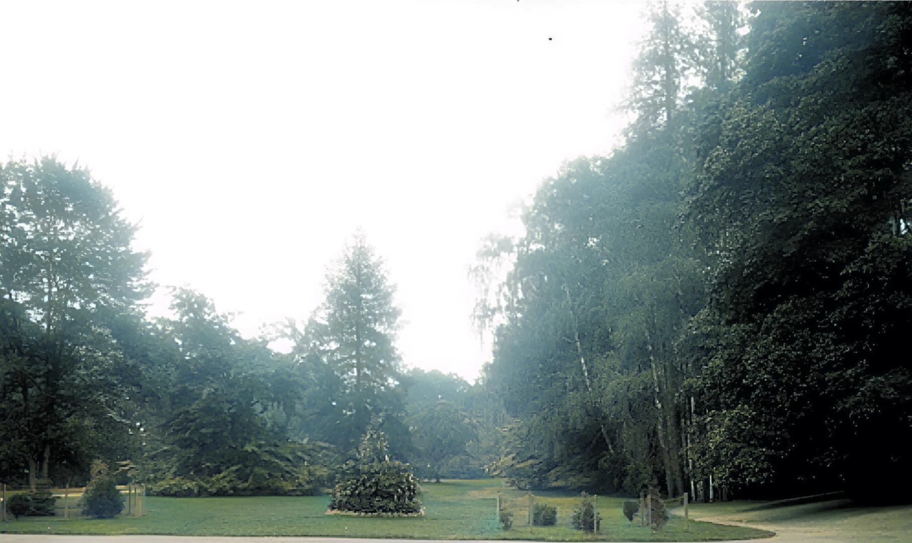 På østsida skulle det være åpent med mye lysinnslepp. Her har vi smale stiar laga av sand, som svingar seg rundt og bryter opp. Tidlig har Holden hatt fontene med dam og detta va særs eksklusivt på denna tida.