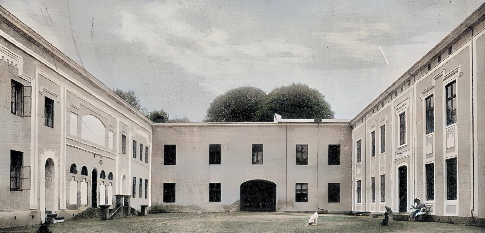« Gamlehuset» fekk rivd av taket i 1856 og blei integrert i den nye østfløyen:
