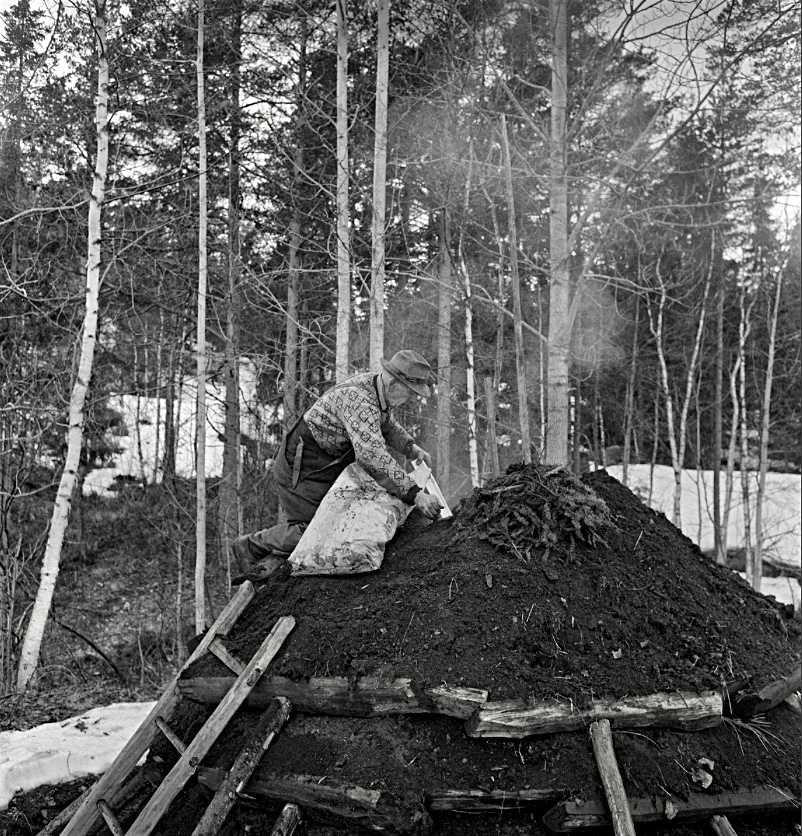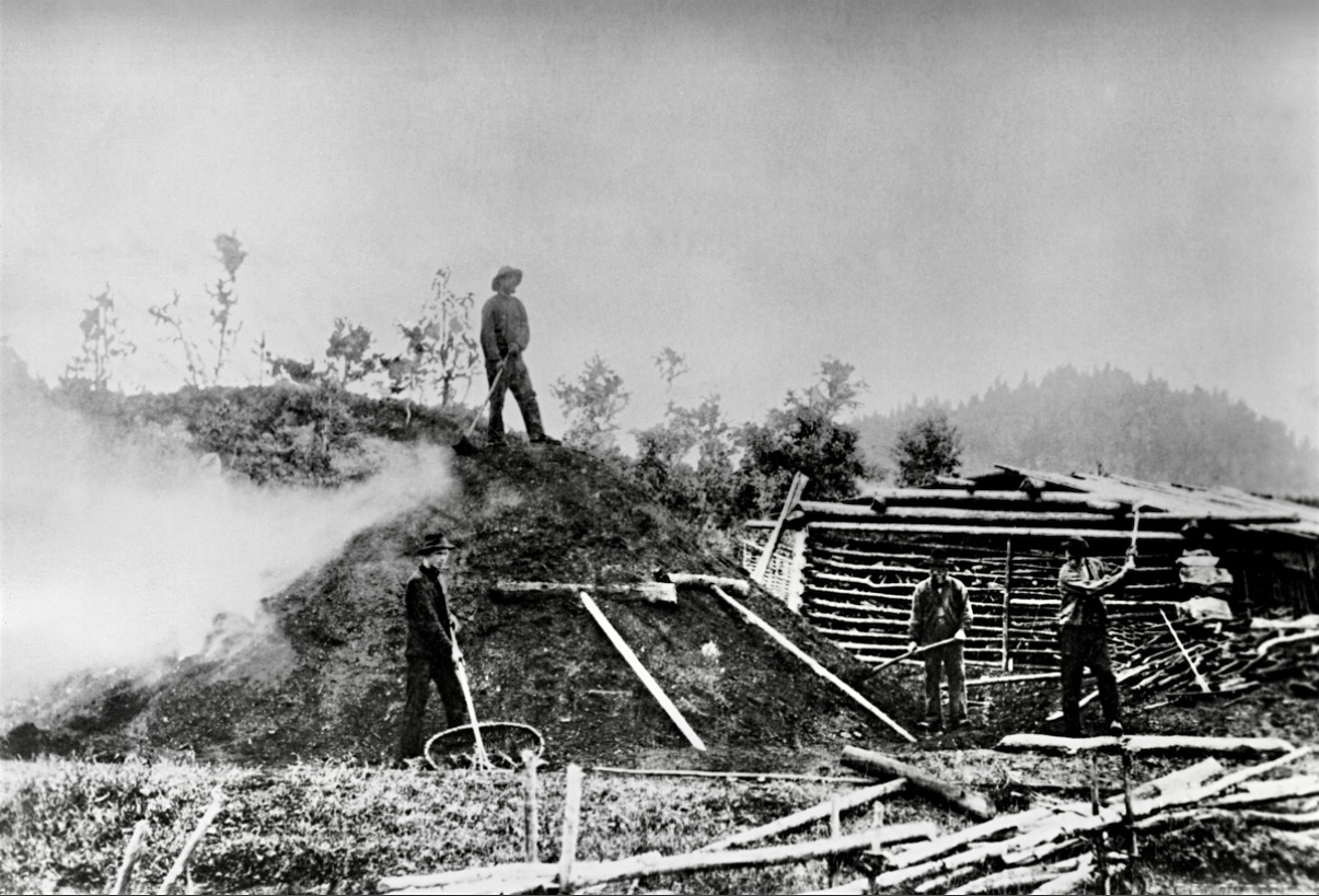 Marsovnen er fylt av jernmalm og trekull ska etterfyllas for å få enda høyere temperatur. Det va så arbeidskrevandes å starte marsovnen opp igjen etter stopp at det blei unngått lengst mulig.