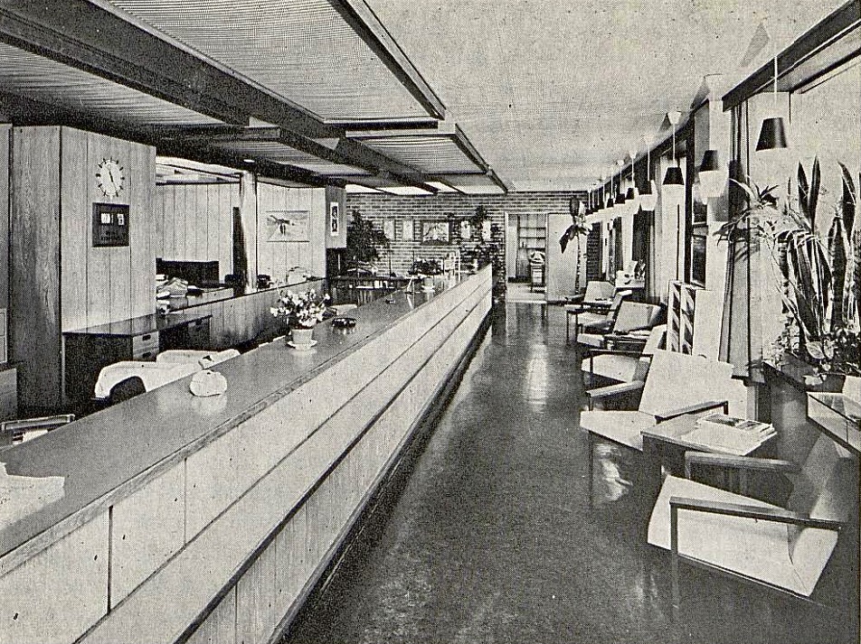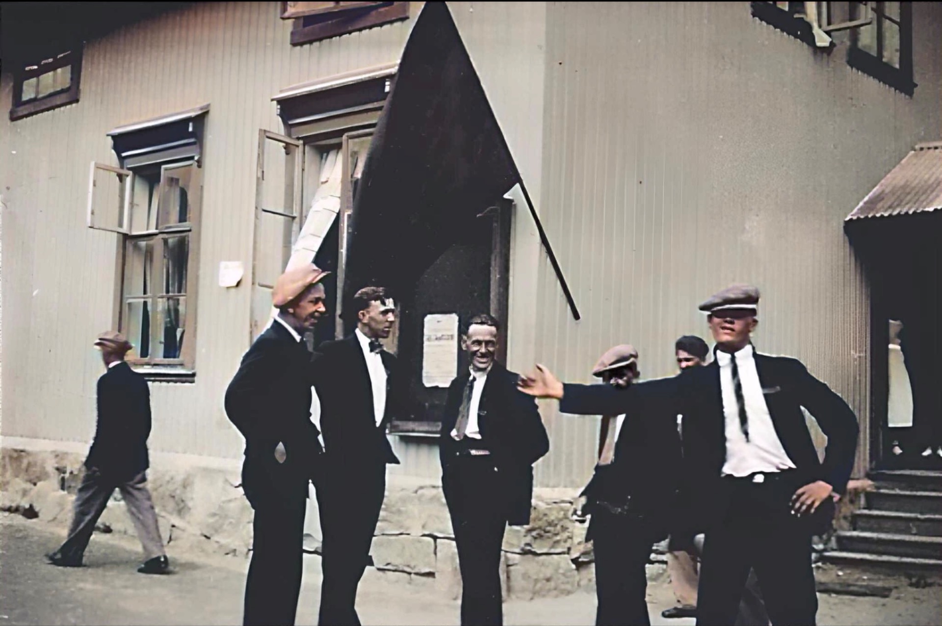 Midt i bygget va det venteværelse for reisende med buss. Her va Torleif på Sandbakken ein uoffisiell vaktmester. Lengst te høyre holdt fiskehandler Sigvald Svendsen te. Sigvald hadde faste dagar han kjørte ut fisk heim te kunder. Oppe ved Dambakke hadde han et lager med tomme fiskekasser. Rundt 1970 hadde ein ungdomsgjeng kasta dissa kassene i kanalen i ein sein kveldstime…….