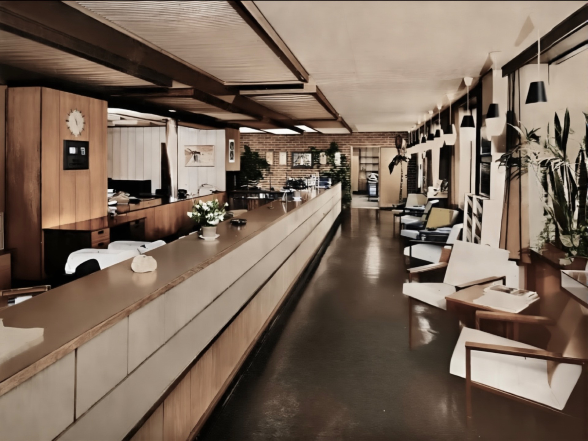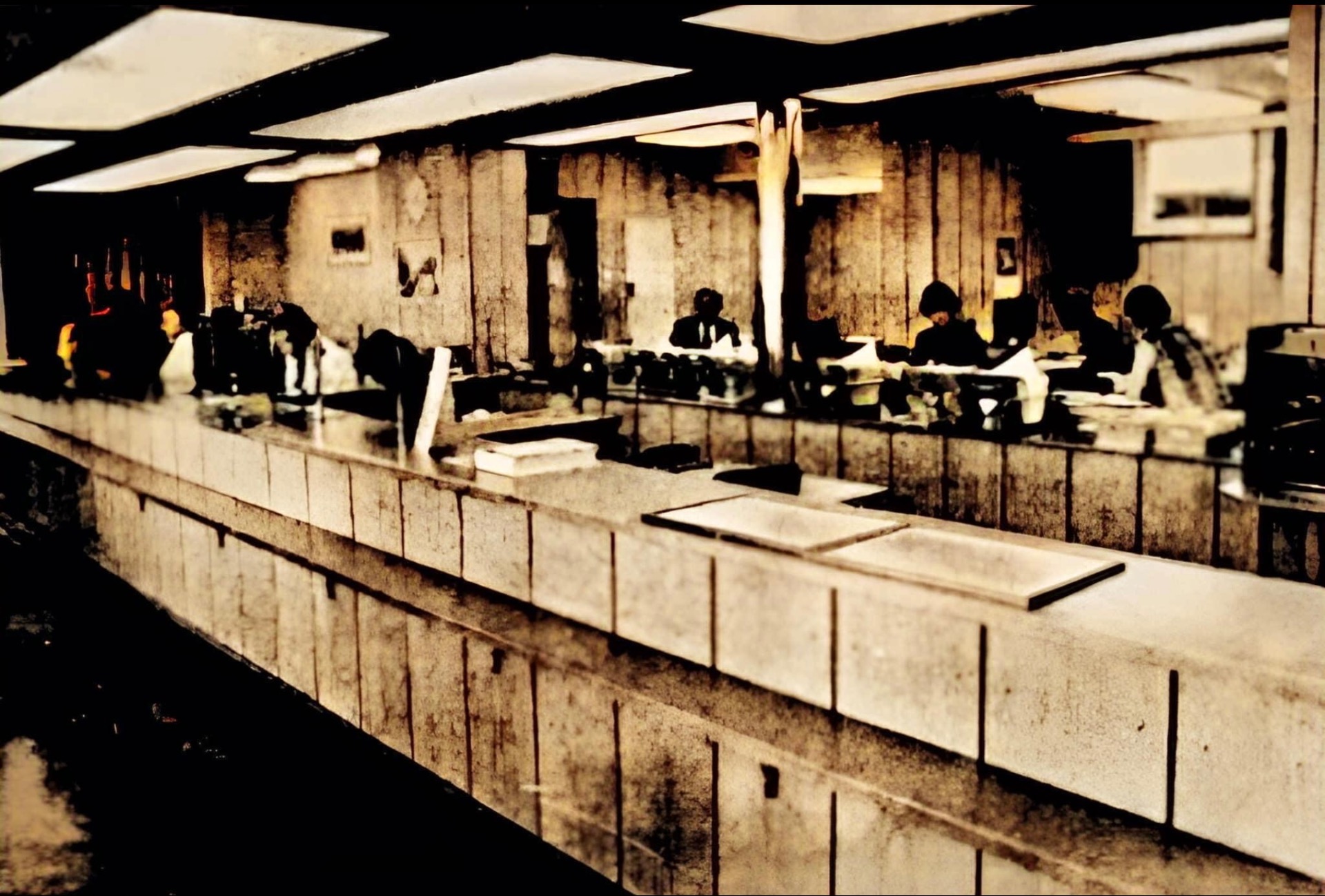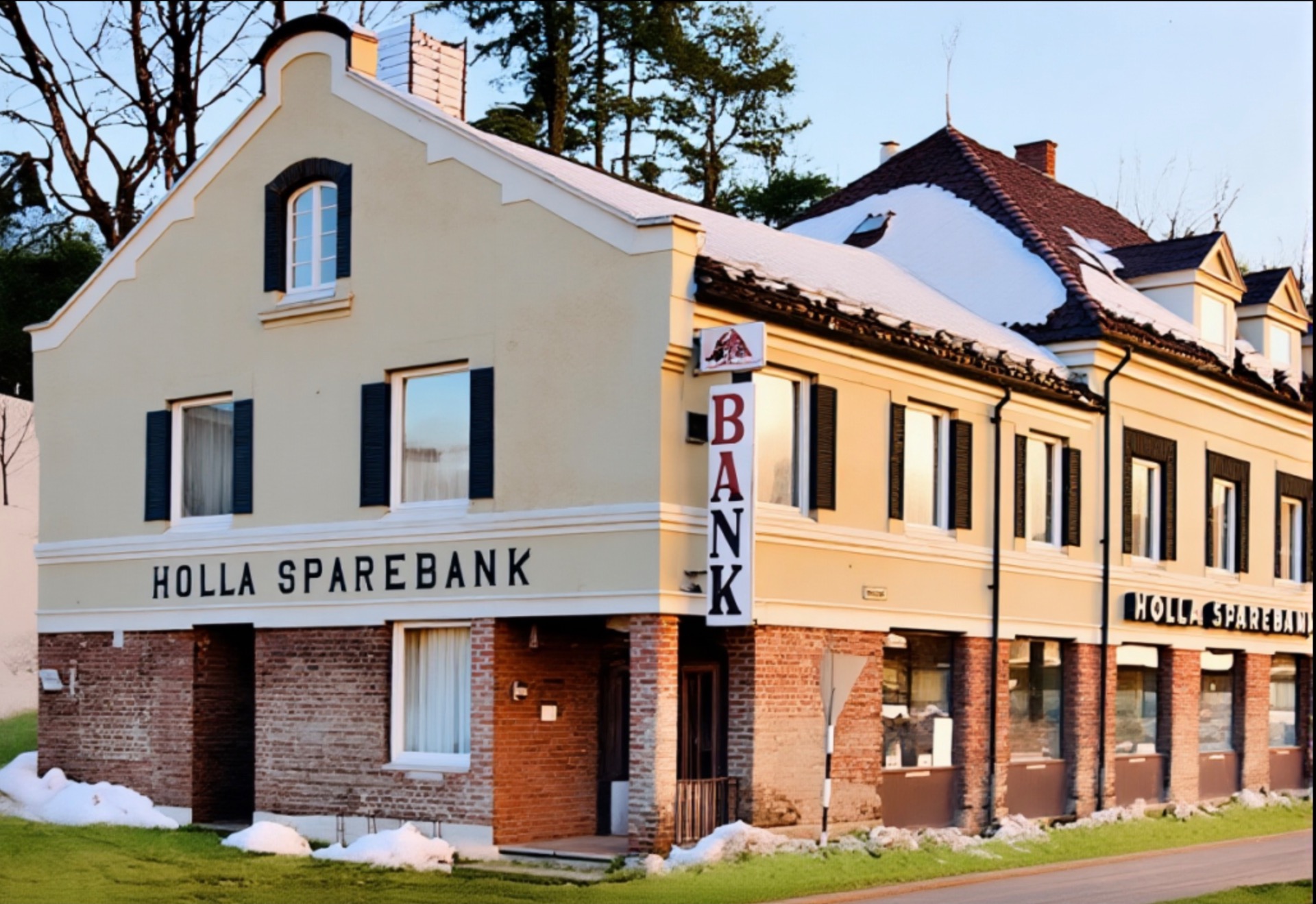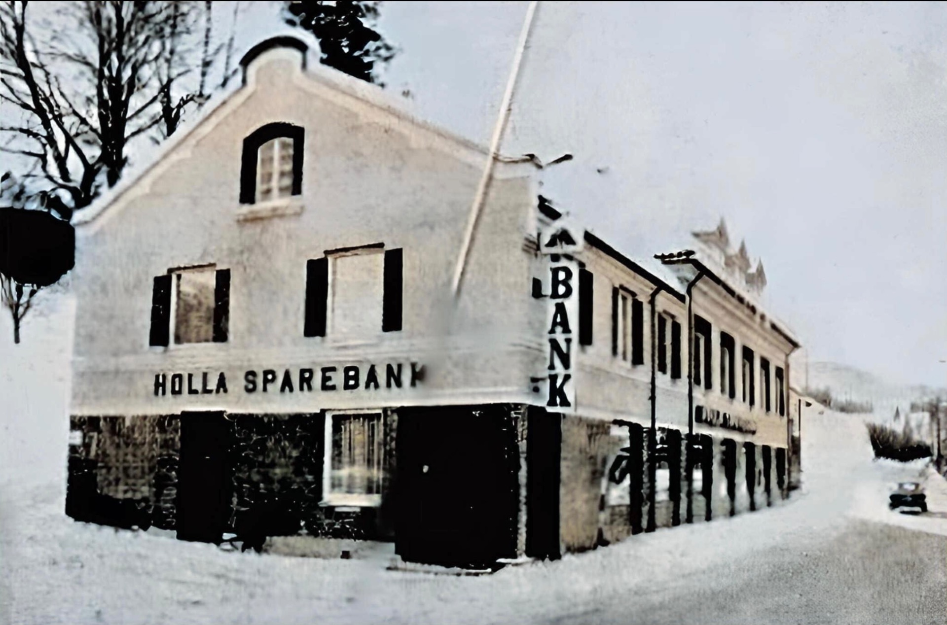 I gamlebanken va det stas å væra med ho mamma å tømme sparebøssa. Da blei det telt opp og det nye beløpet blei ført inn i den røde bankboka med kulepenn. Så blei det heile gitt et stempel. Her va det ein lang disk som skilte kundene fra de ansatte.