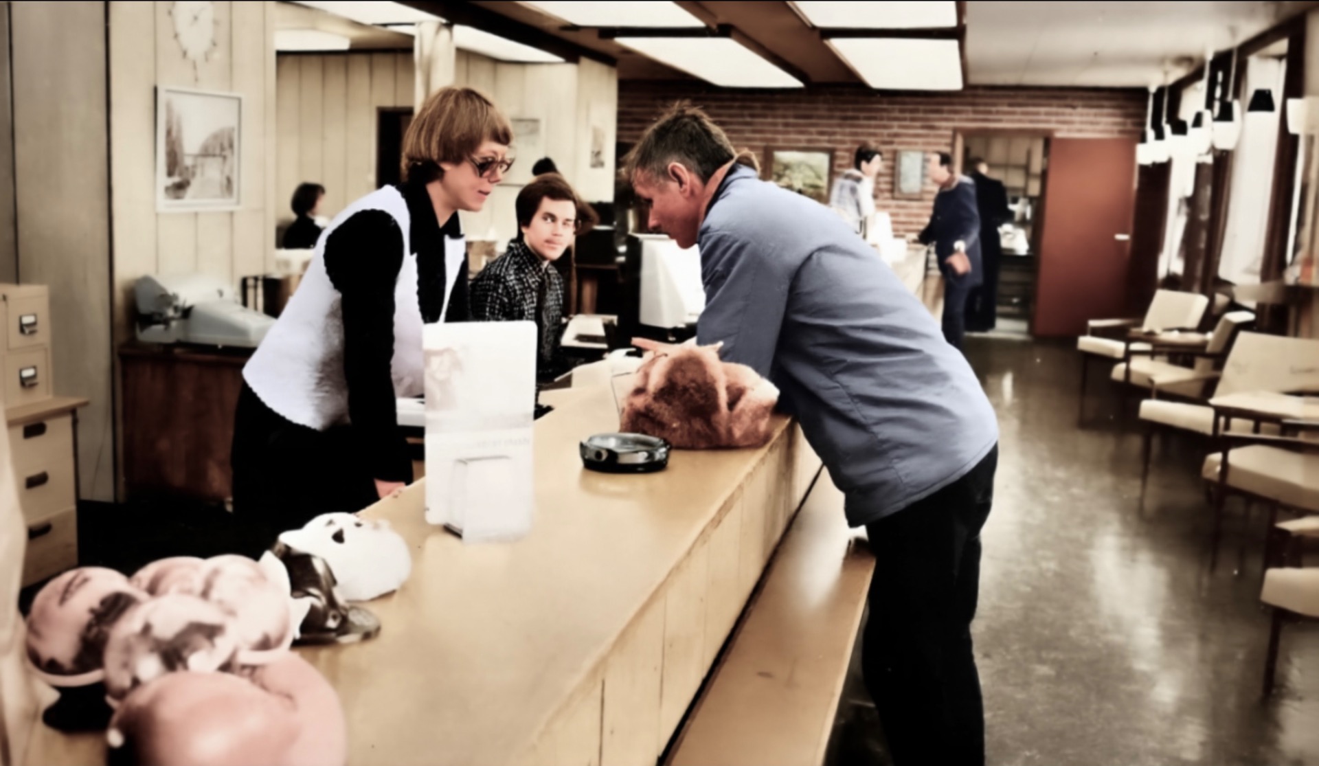 I 2. etasje på banken viste Anders Jynge fram tegnefilmar for oss ungane som han hadde sjøl. Jeg trur det va ein 16mm framvisar og vi så Donald, Tom og Jerry og andre 3-4 minutters filmar. Det heile kosta 2 kroner!