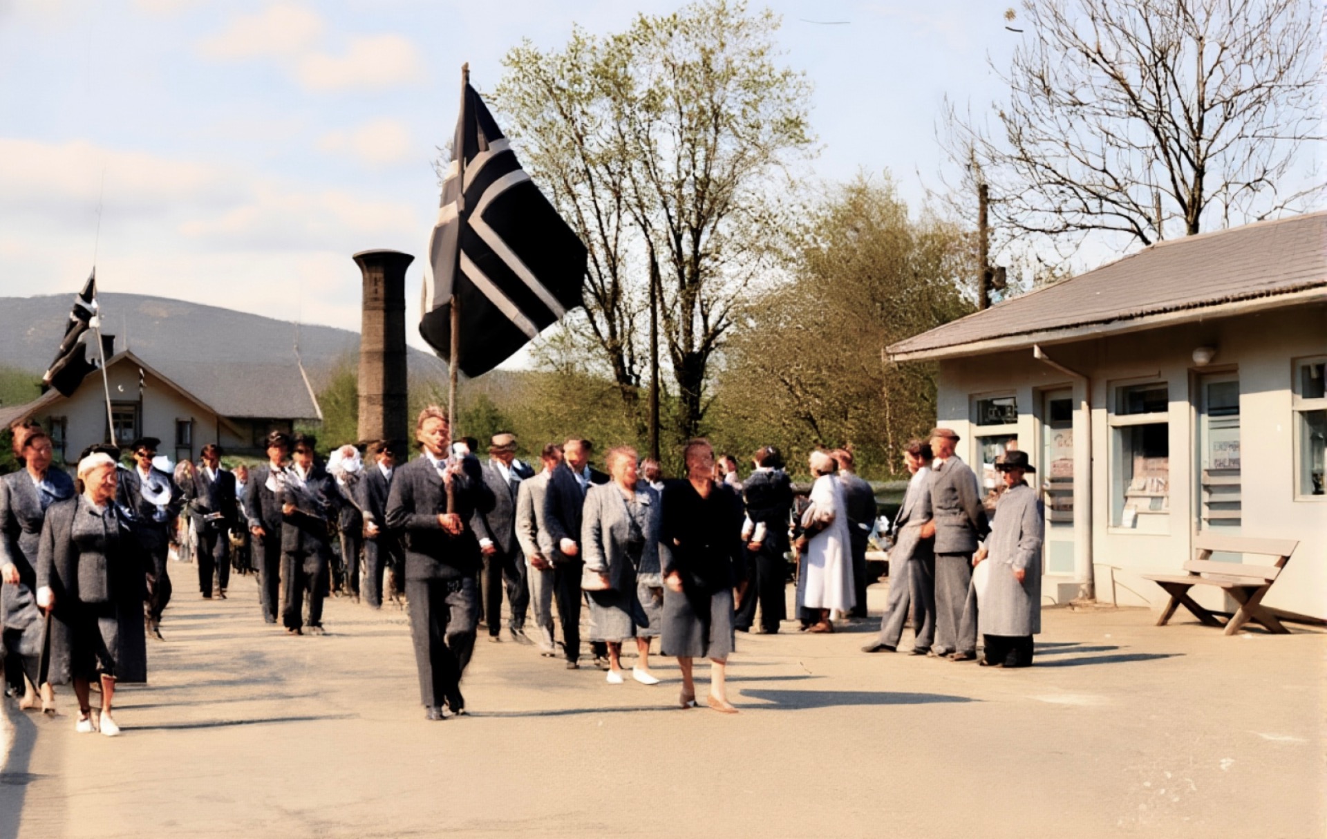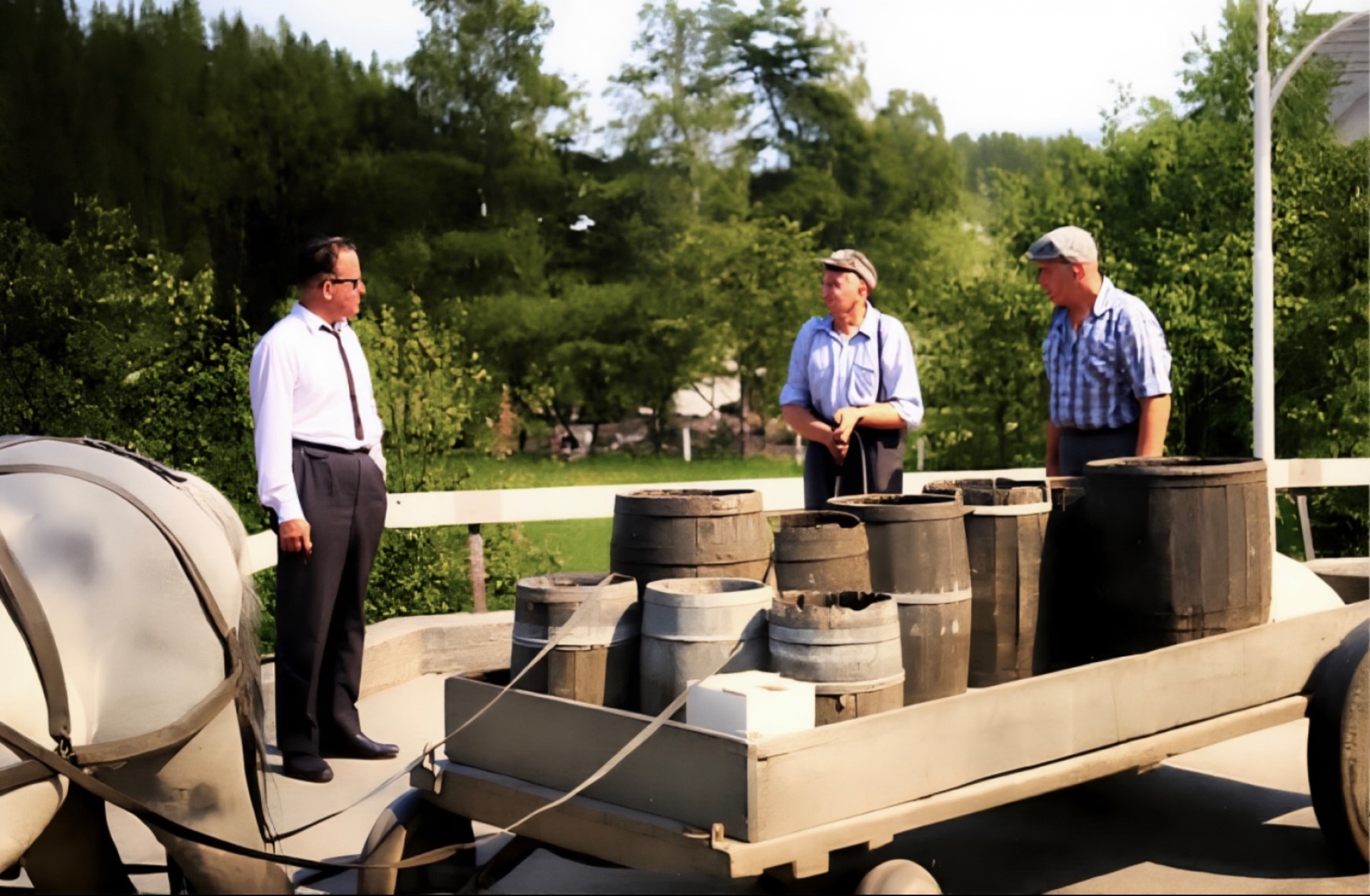 Gammalt bilde av Hasseleids kolonial ved oppkjøringa te Heisholt.
