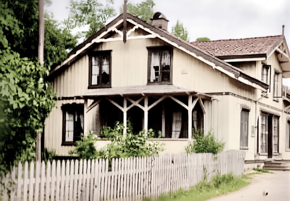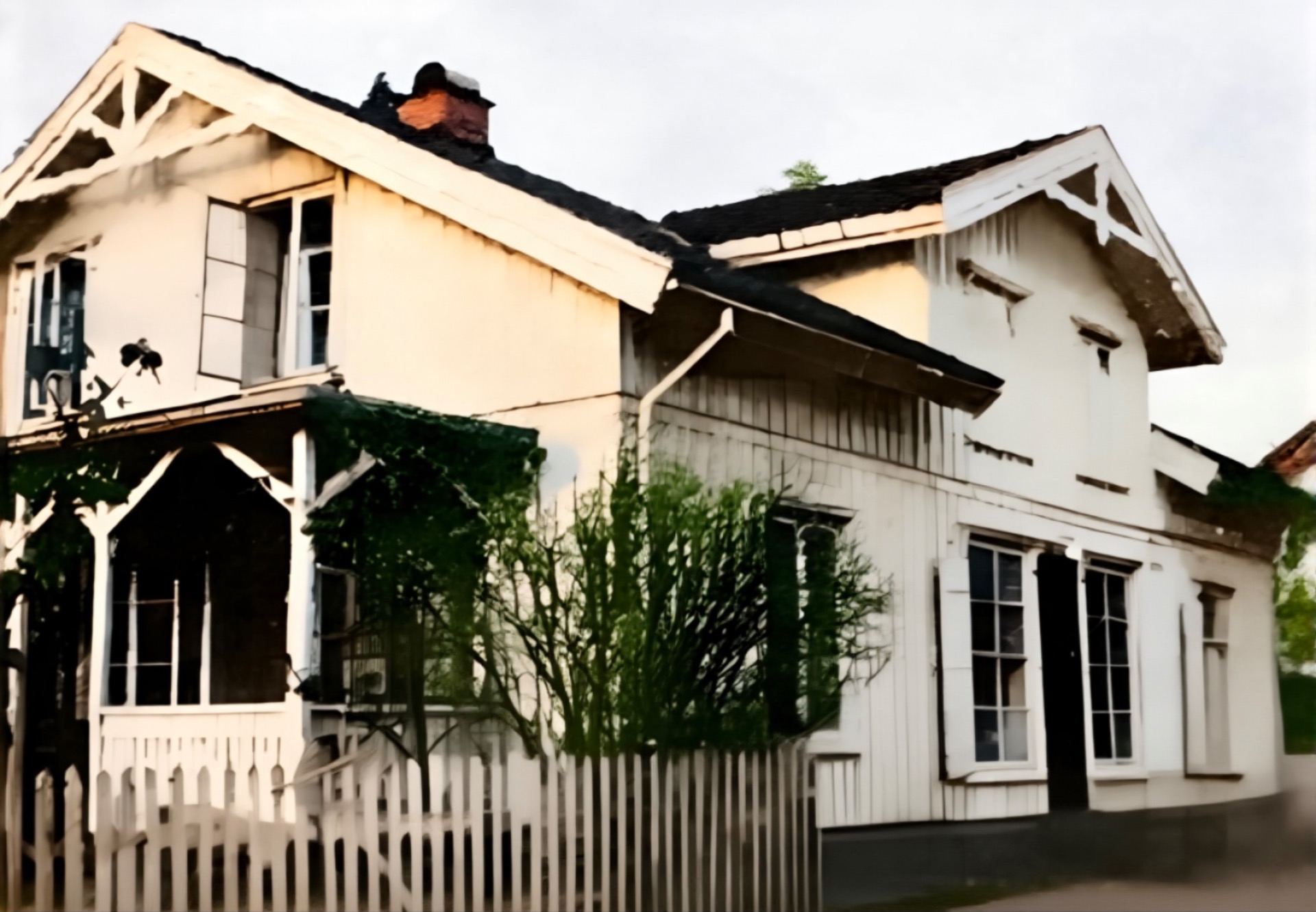 Skomakaren holdt te i huset te venstre. Da fotografiet blei tatt, husa det et foto-studio. Vi leser « Fotografist Kirsebom Ulefos».