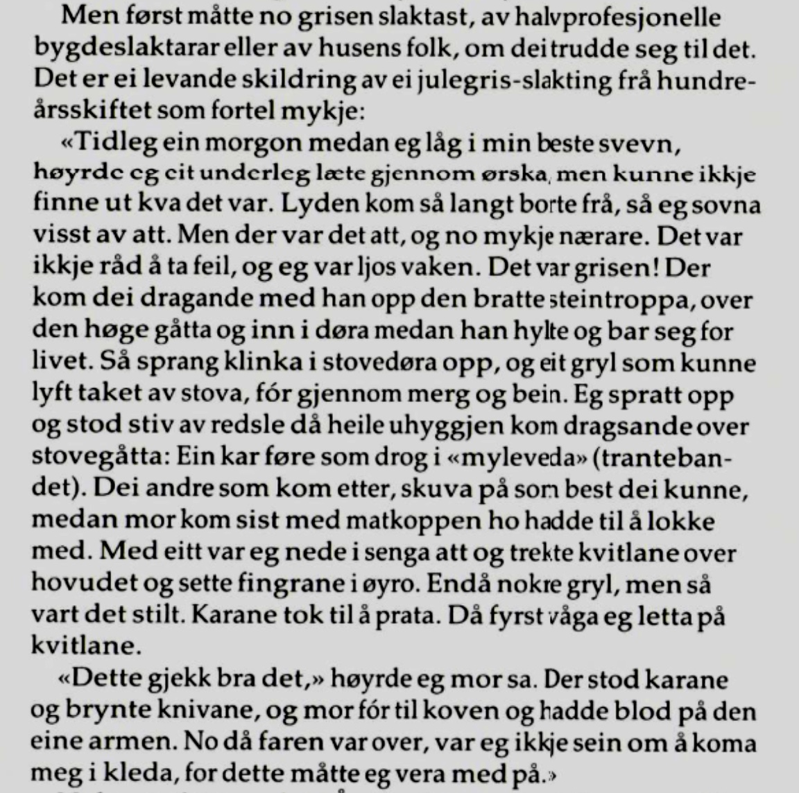 Det finaste slaktet va gjøgrisen. Den skulle helst væra så feit at den nesten ikke kunne stå på beina!