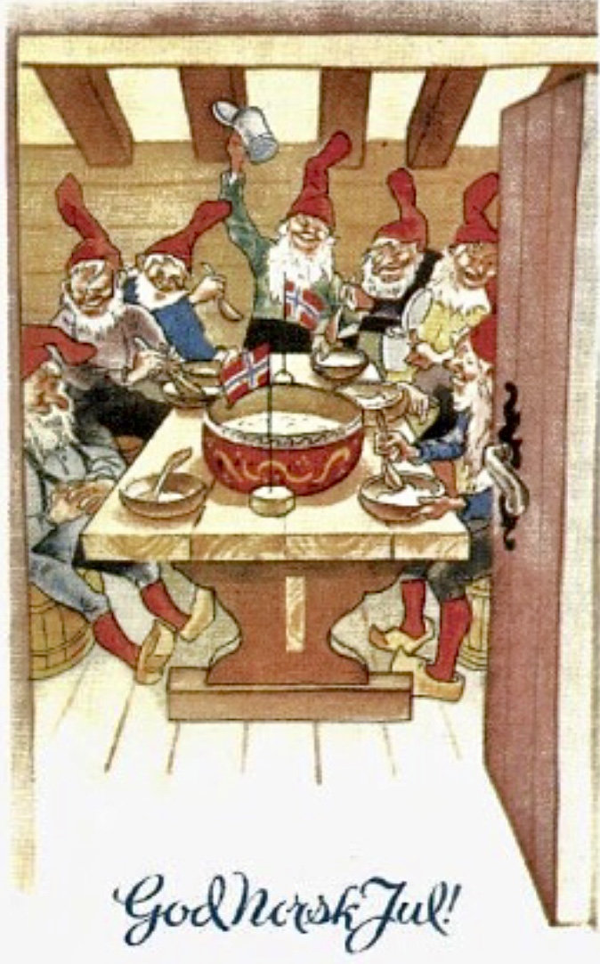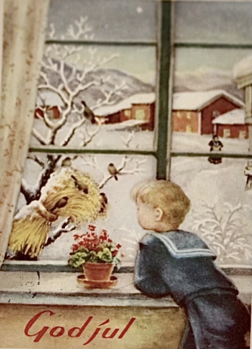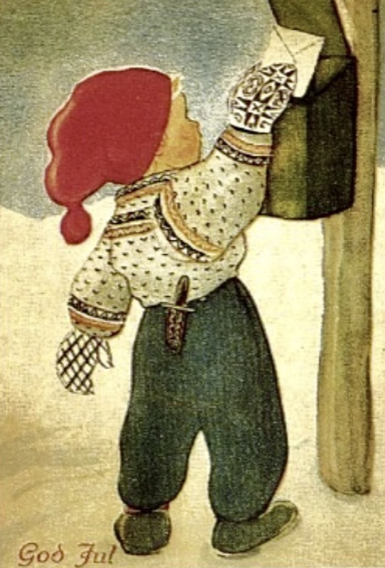 Det første kjente norske julekortet blei sendt i 1870. Først etter 1900 blei detta ein vanlig tradisjon. De første korta va danske og tyske og norske motiv skulle komme siden med natur og gårdsmiljø. Sjøl har jeg sett at nissemotiva på julekorta kom for fullt først etter 2. verdenskrig. Nå har vi ikke lenger råd te å sende julekort.