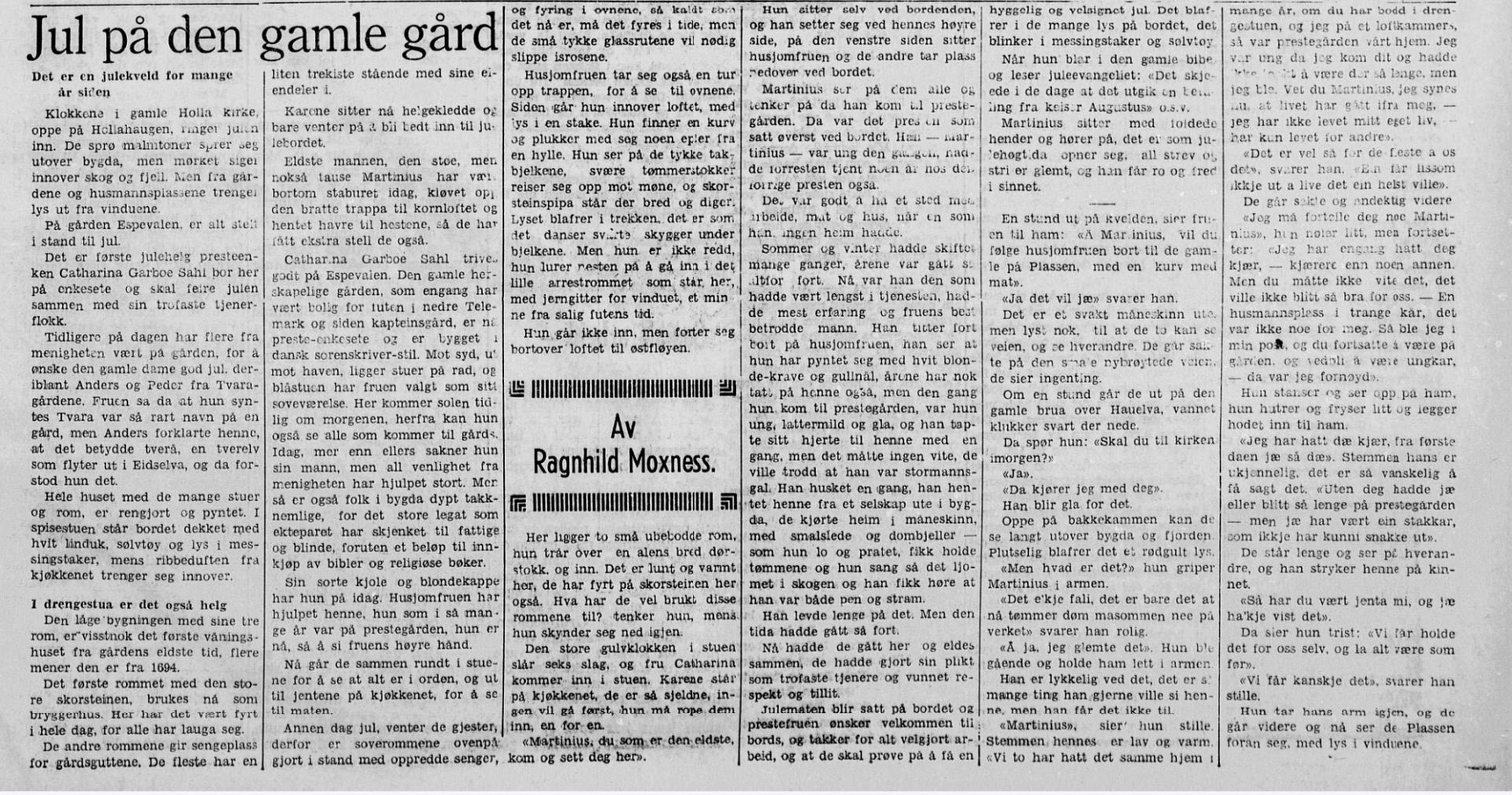 Så følger ei lita lokal julehistorie som ulefossdama Ragnhild Moxness(1899-1989) fekk utgitt i jula 1960: