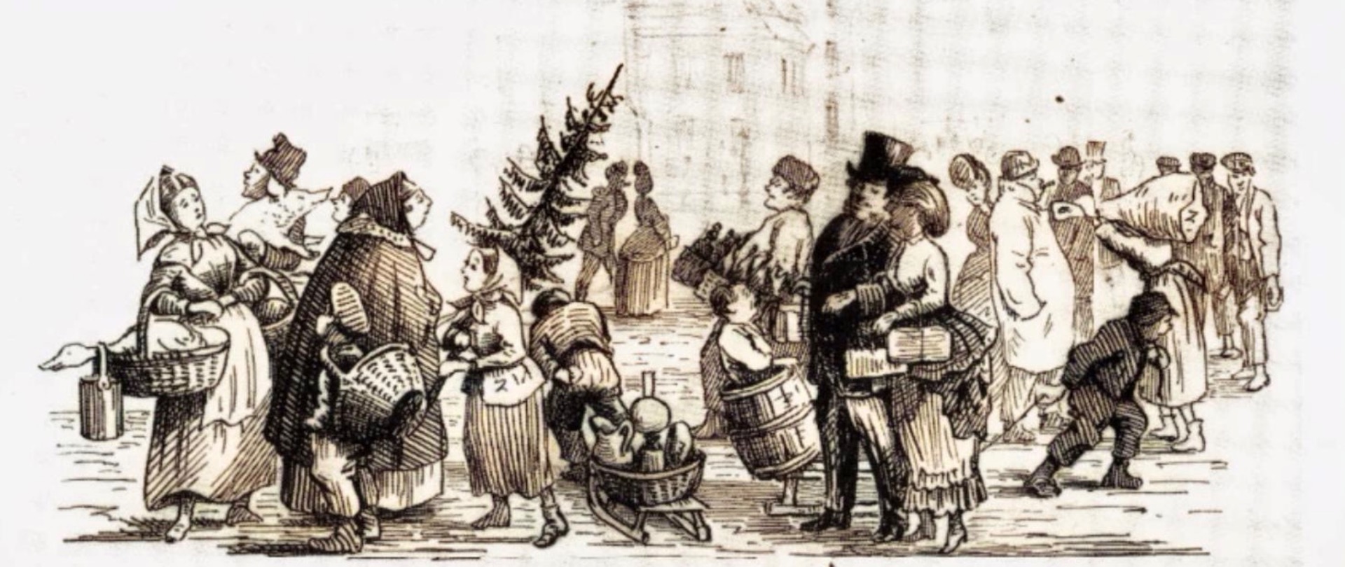 Skikken med å henge spiselige ting på treet holdt seg te 2. verdenskrig.