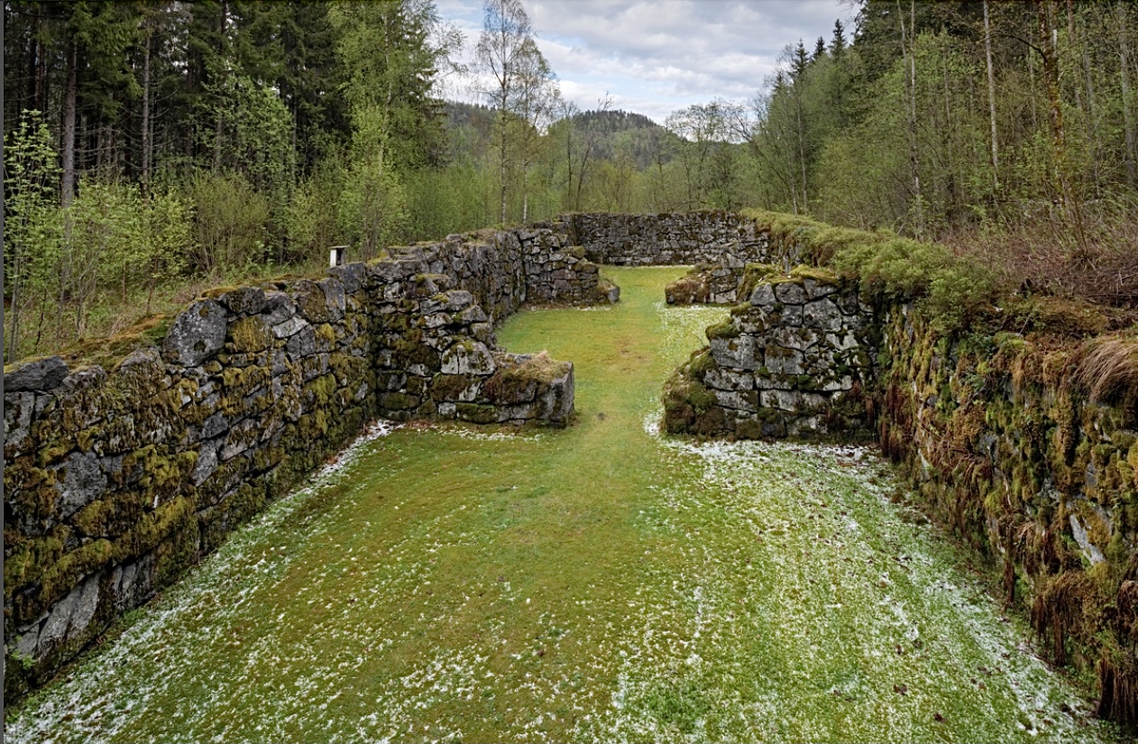 Her ser vi grunnmuren te et kullhus på Moholt i Siljan. Kullet blei frakta heilt te Fritzøe Jernverk i Larvik som va eiaren av kullhuset. Vi ser at kullhuset hadde enorme dimensjonar.