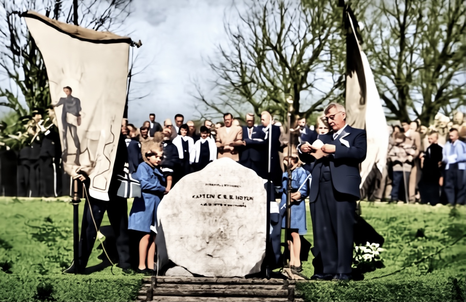 Halvor Toreskaas jr va som vi skjønner ein meget viktig mann i motstanden mot tyskerane. Flyveren Michael Hicks kom siden tebake te Holla i 1972 :