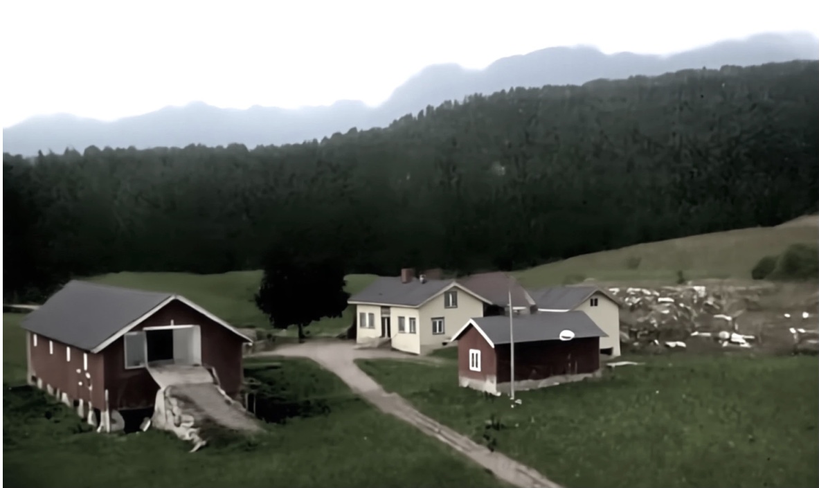 Året er 1961 og det er Tore Larsen sin bror vi ser. Plassen Berge ser vi te venstre og Dagfinn Negård bur her i 61. Foto: Tore Larsen.