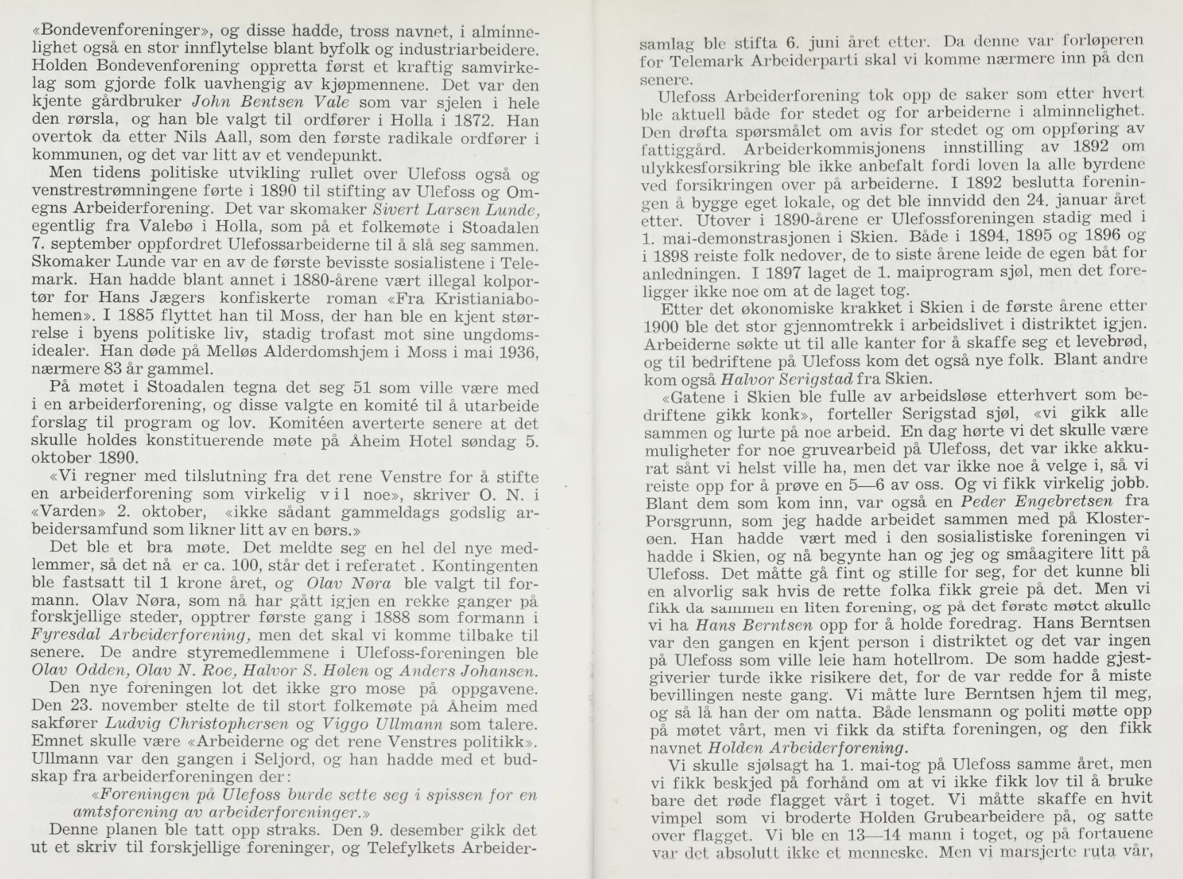 April 1870. Detta er tankar rundt ulike bygder i Telemark som noen gjør seg på reise med dampbåten. Det ser ut som om det er gjengs oppfatning at det går et skille mellom Ulefoss og bygdene lenger nord. Fjeldmennane va fellesnavnet på bygdene nordafor oss. De va stolte og hadde delvis sleppi å dele opp sine eiendommar i mindre støkker. Mange som budde fra Ulefoss og sørover va jernverksarbeidere og leilendingar. De jobba for andre - ikke seg sjøl som fjellmennane! Detta resulterte i at fjellmennane va naturlig mistenksomme te det nye, men byfolket kasta seg over alt nytt. Resultatet va store lånopptak i byane og stor framtidstru, mens lenger nord va de opptatt av veiutbygging og dyreavl og ønske om så få forandringar som mulig. Nå hadde mange optimistar i byane økonomiske problemer og bygdelaga hadde hatt fleire dårlige år innen jordbruket.